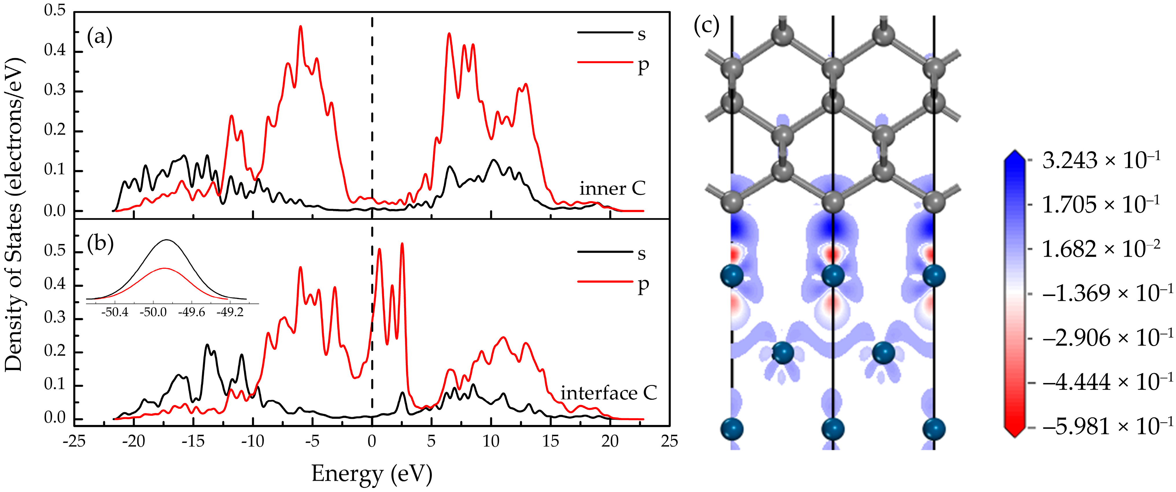 3.1. Ir(100)/Dia(100) Interfacial Interactions