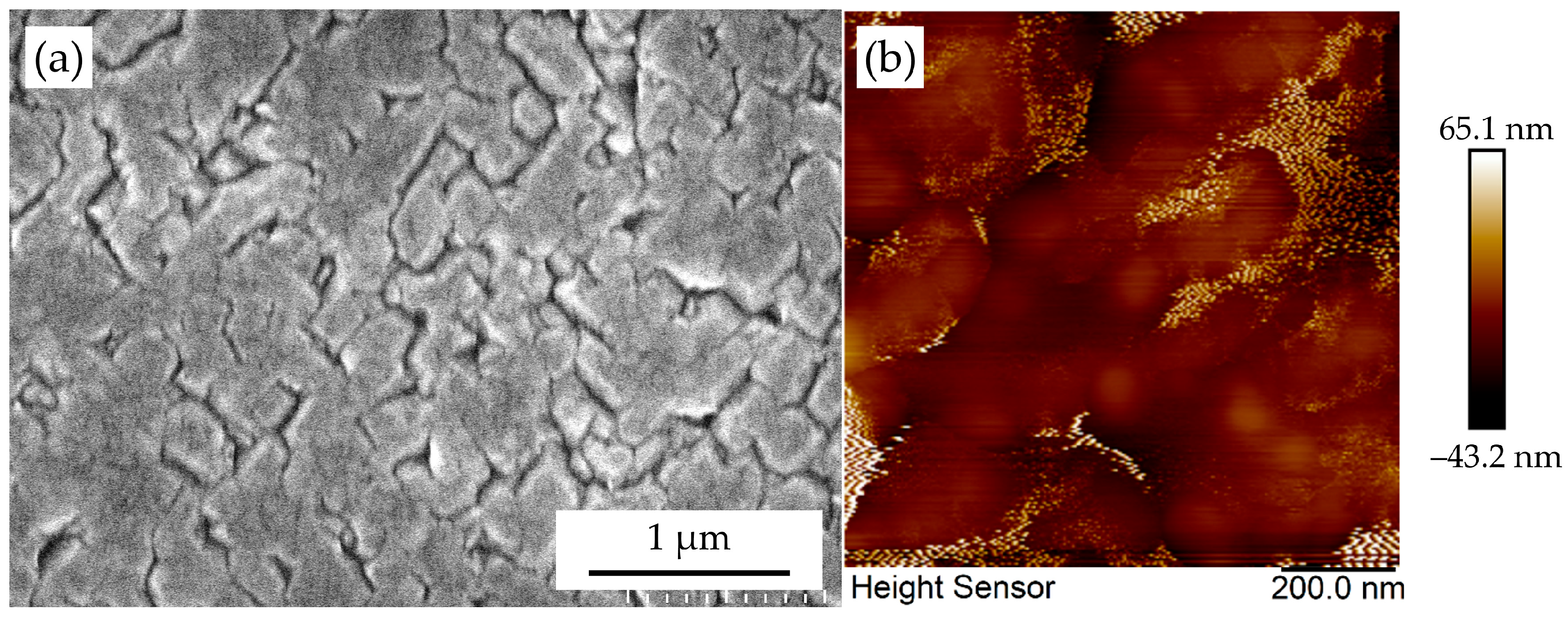 - Kazantsev, D.M.; Akhundov, I.O.; Rudaya, N.S.; Kozhukhov, A.S.; Alperovich, V.L.; Latyshev, A.V. Thermal roughening of GaAs surface by unwinding dislocation-induced spiral atomic steps during sublimation. Appl. Surf. Sci. 2020, 529, 147090. [Google Scholar] [CrossRef]