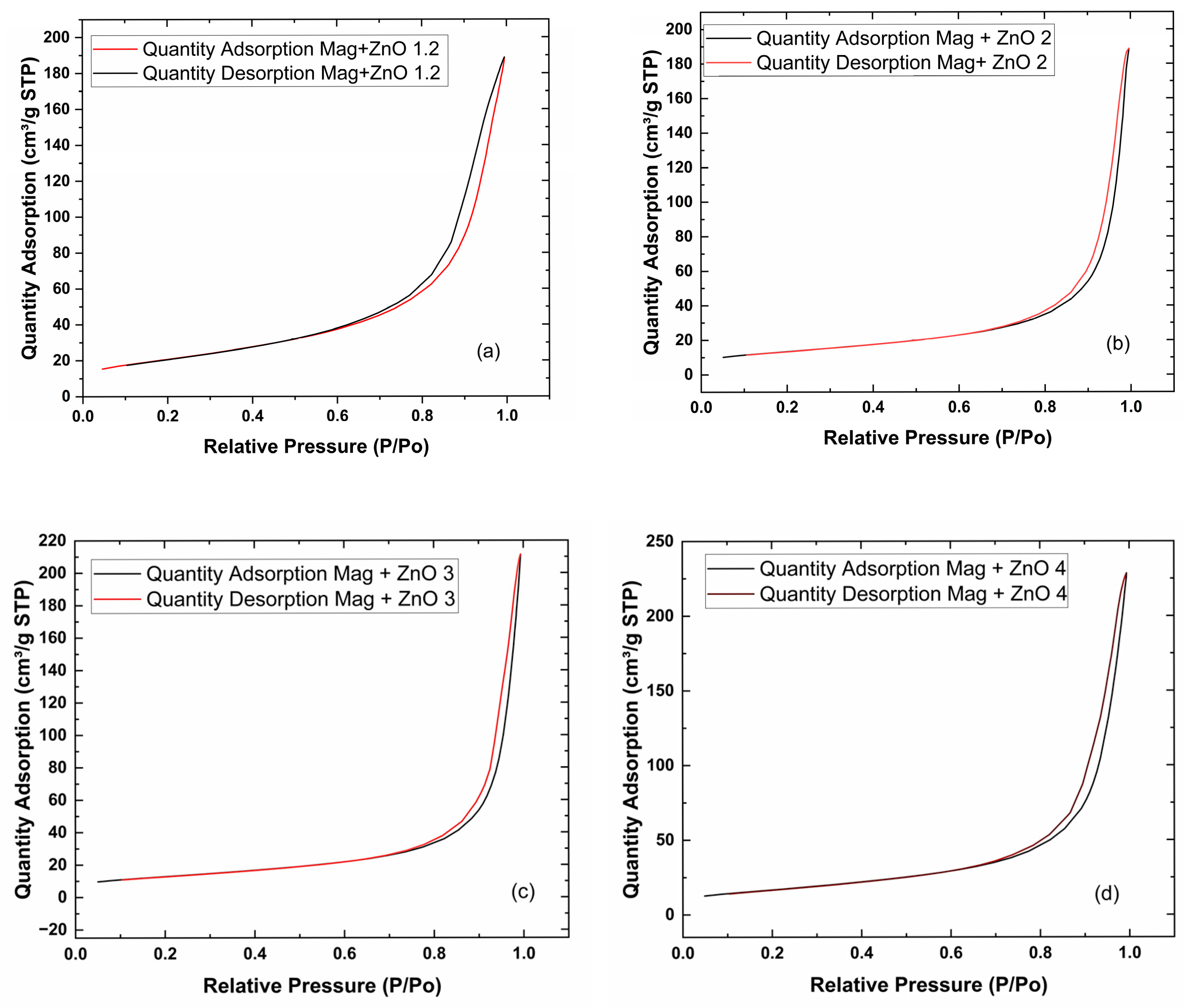 - Comparatively, sample MAG-ZnO 1 (BET specific surface area: 74.92 m2/g) exhibits the most favorable combination of high specific surface area and small particles, making it recommended for applications requiring a high degree of adsorption or surface activity (e.g., catalysis, water purification, functional magnetic systems, medical applications).