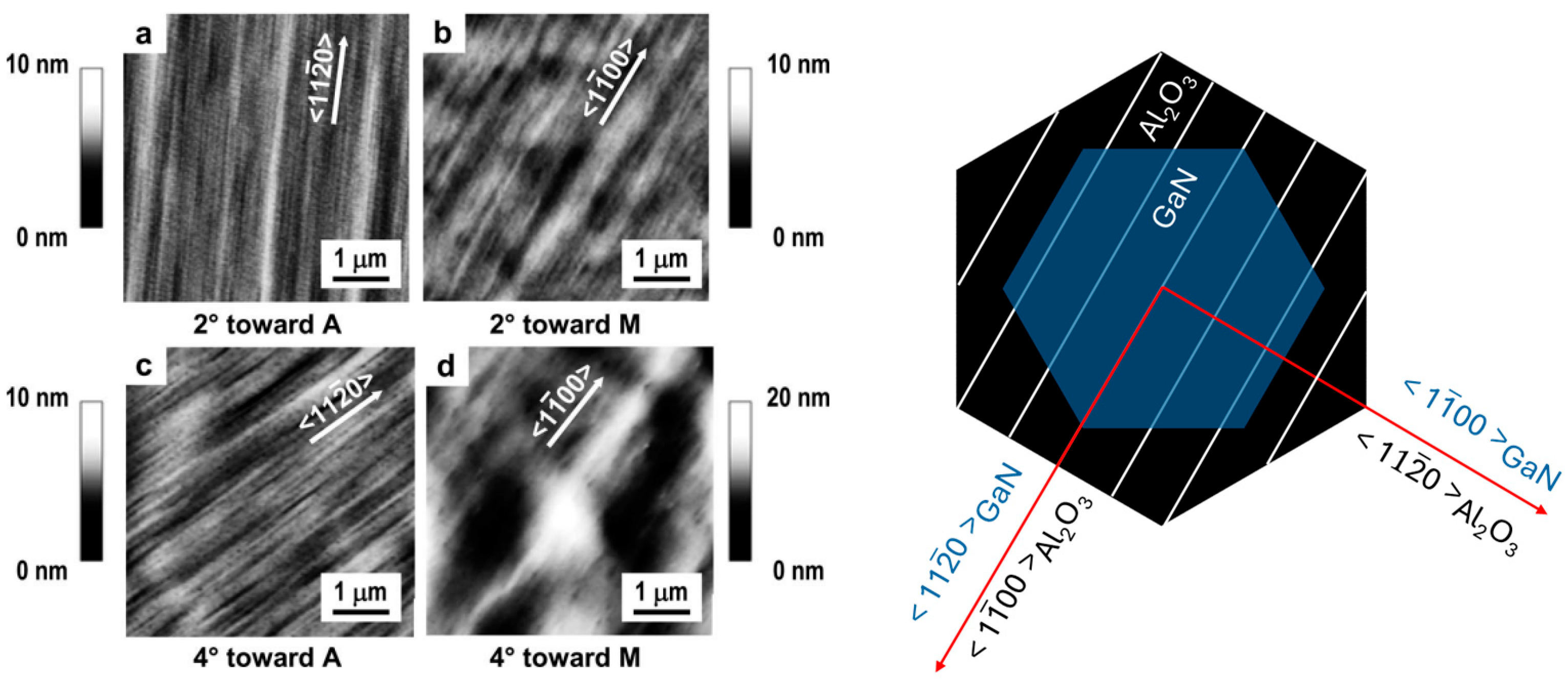 - Heying, B.; Averbeck, R.; Chen, L.F.; Haus, E.; Riechert, H.; Speck, J.S. Control of GaN surface morphologies using plasma-assisted molecular beam epitaxy. J. Appl. Phys. 2000, 88, 1855–1860. [Google Scholar] [CrossRef]