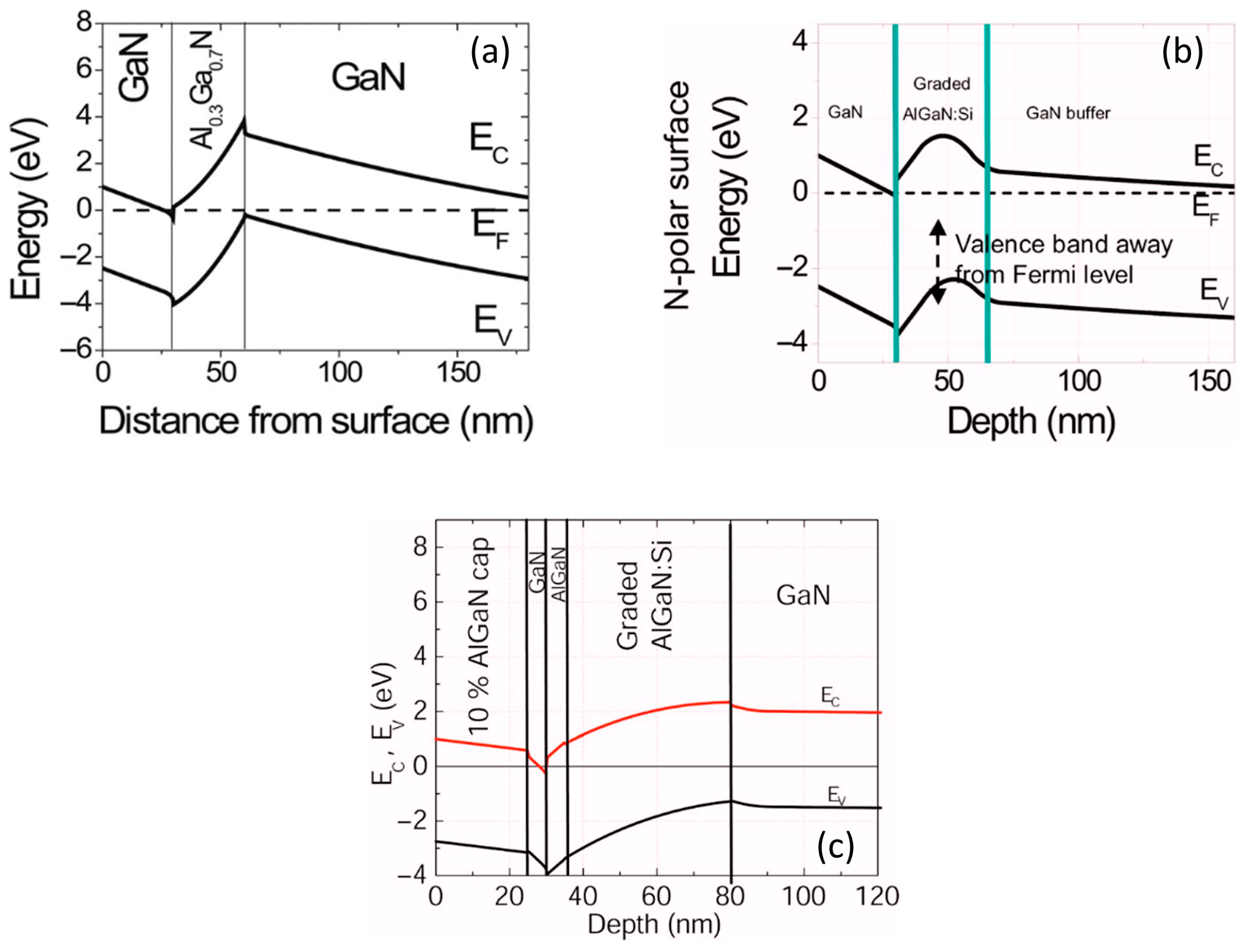 - Murphy, M.J.; Chu, K.; Wu, H.; Yeo, W.; Schaff, W.J.; Ambacher, O.; Smart, J.; Shealy, J.R.; Eastman, L.F.; Eustis, T.J. Molecular beam epitaxial growth of normal and inverted two-dimensional electron gases in AlGaN/GaN based heterostructures. J. Vac. Sci. Technol. B Microelectron. Nanometer Struct. Process. Meas. Phenom. 1999, 17, 1252–1254. [Google Scholar] [CrossRef]