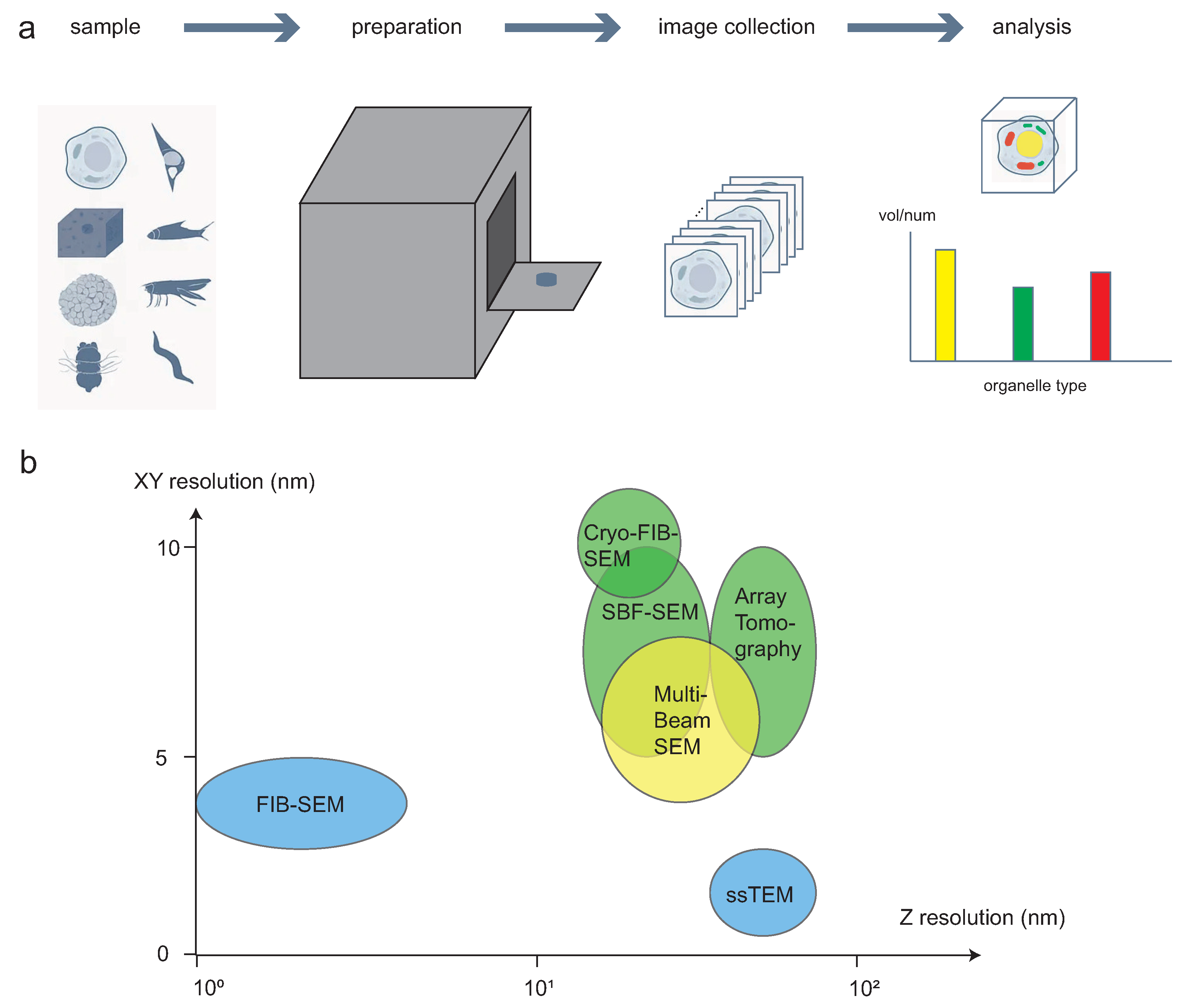 | SBF-SEM | 6–12 | 25–50 | 105–107 | Moderate |