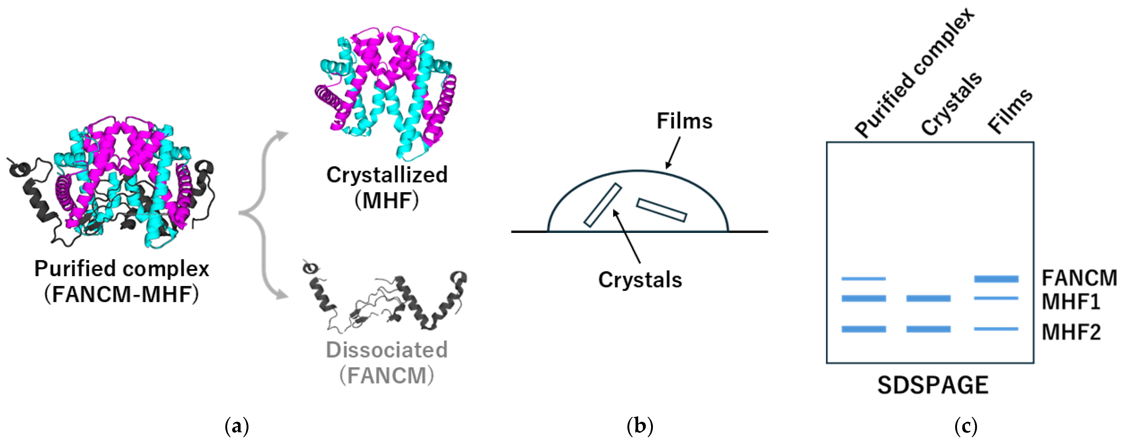 - Ito, S.; Nishino, T. Structural Analysis of the Chicken FANCM–MHF Complex and Its Stability. Acta Crystallogr. Sect. F Struct. Biol. Commun. 2021, 77, 1–7. [Google Scholar] [CrossRef]