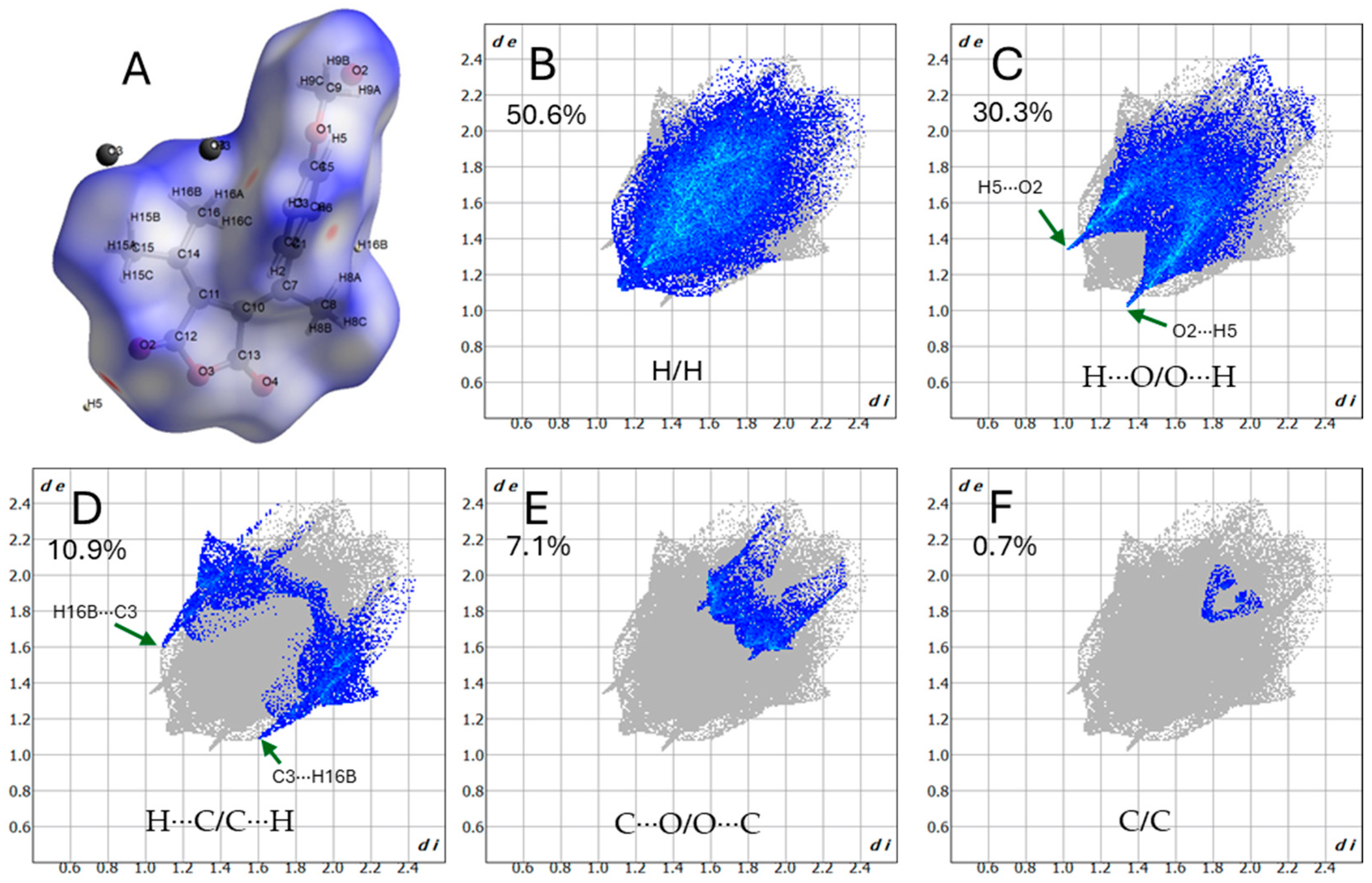 Figure 14A. The corresponding contact fingerprint plots for H···H, H···O, H···C, C···O, and C···C interactions are displayed in