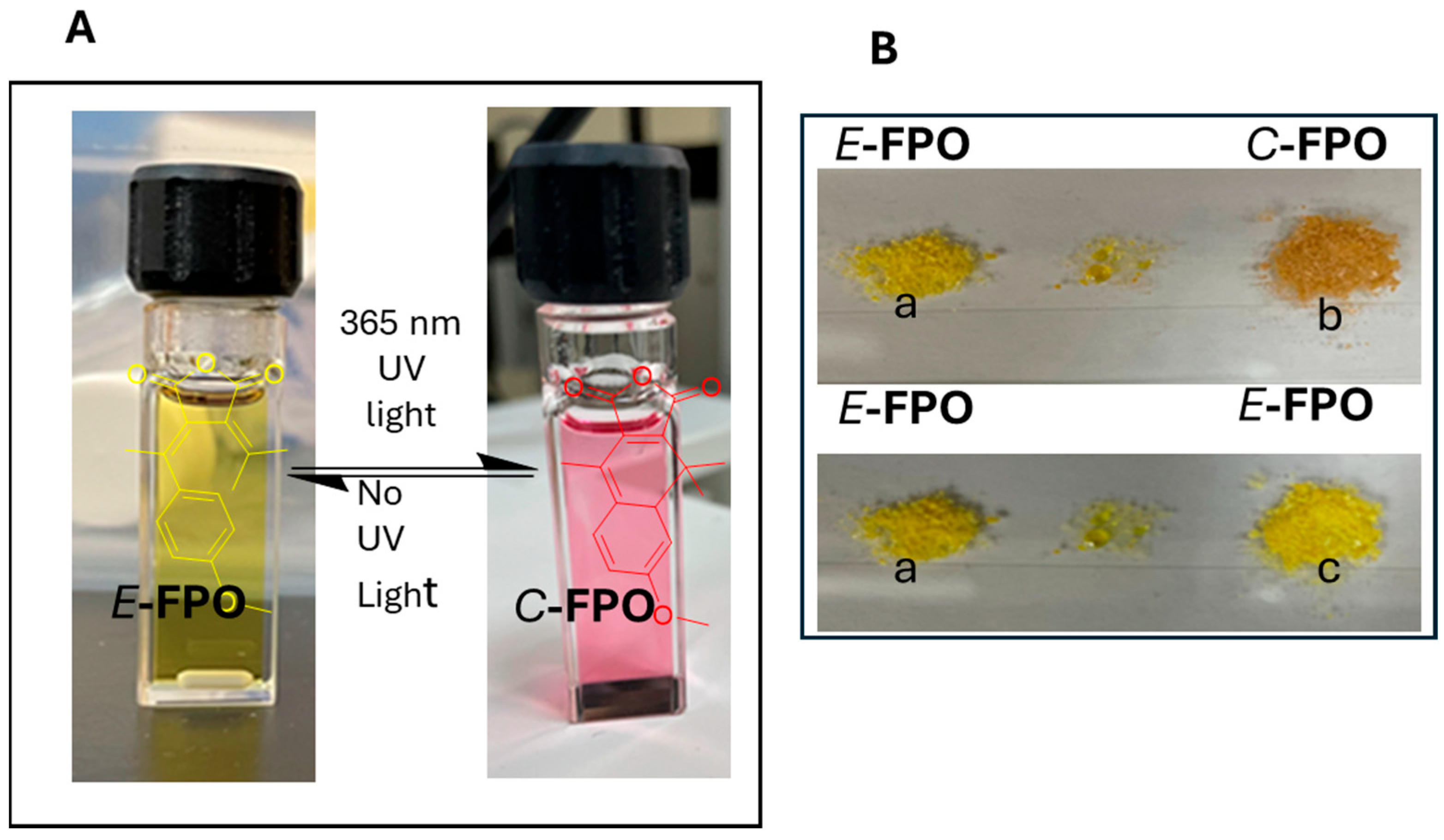 FPO in methylene dichloride changed from yellow to red upon UV irradiation and recovered to its original state within 5 min after the irradiation was stopped (see