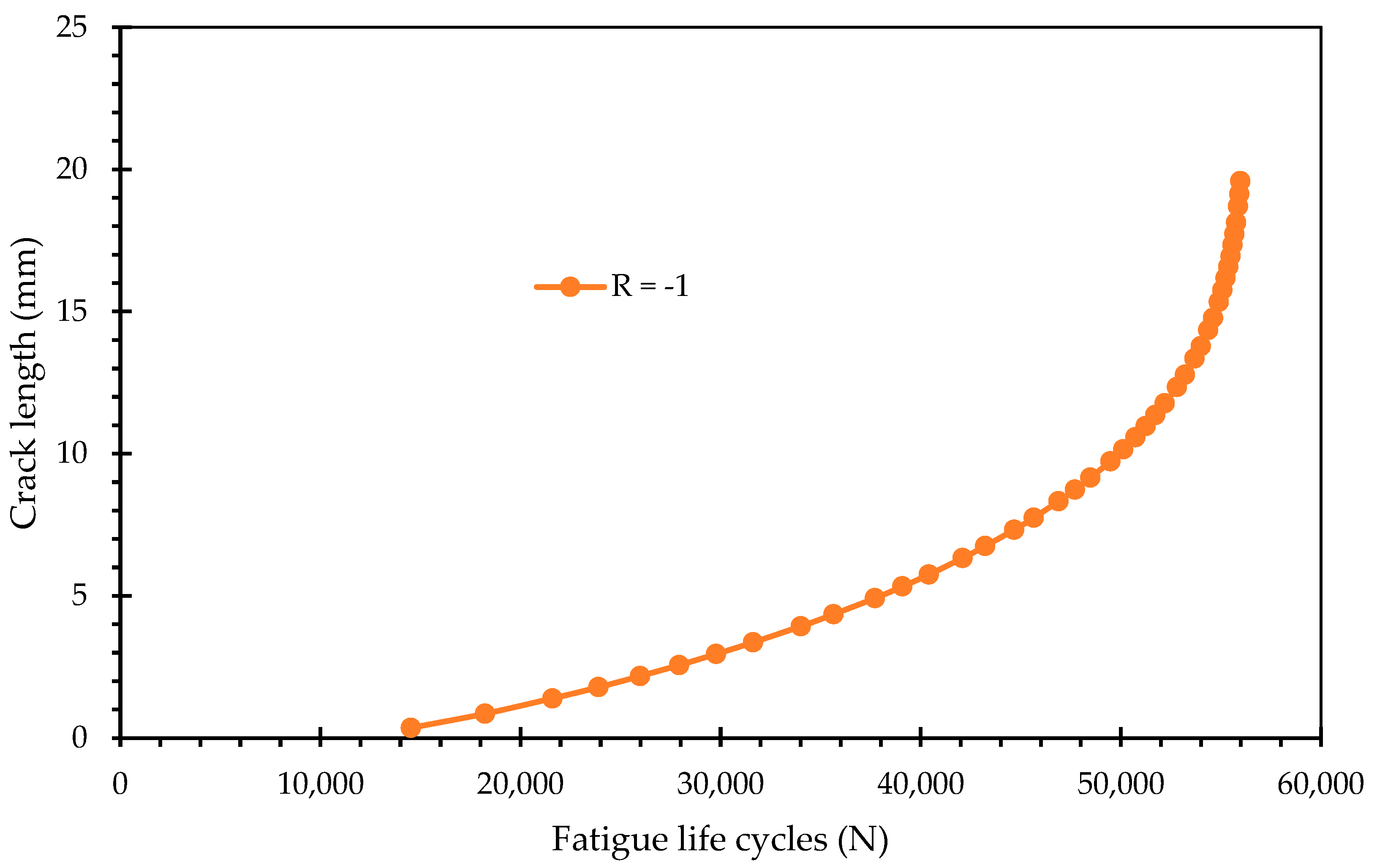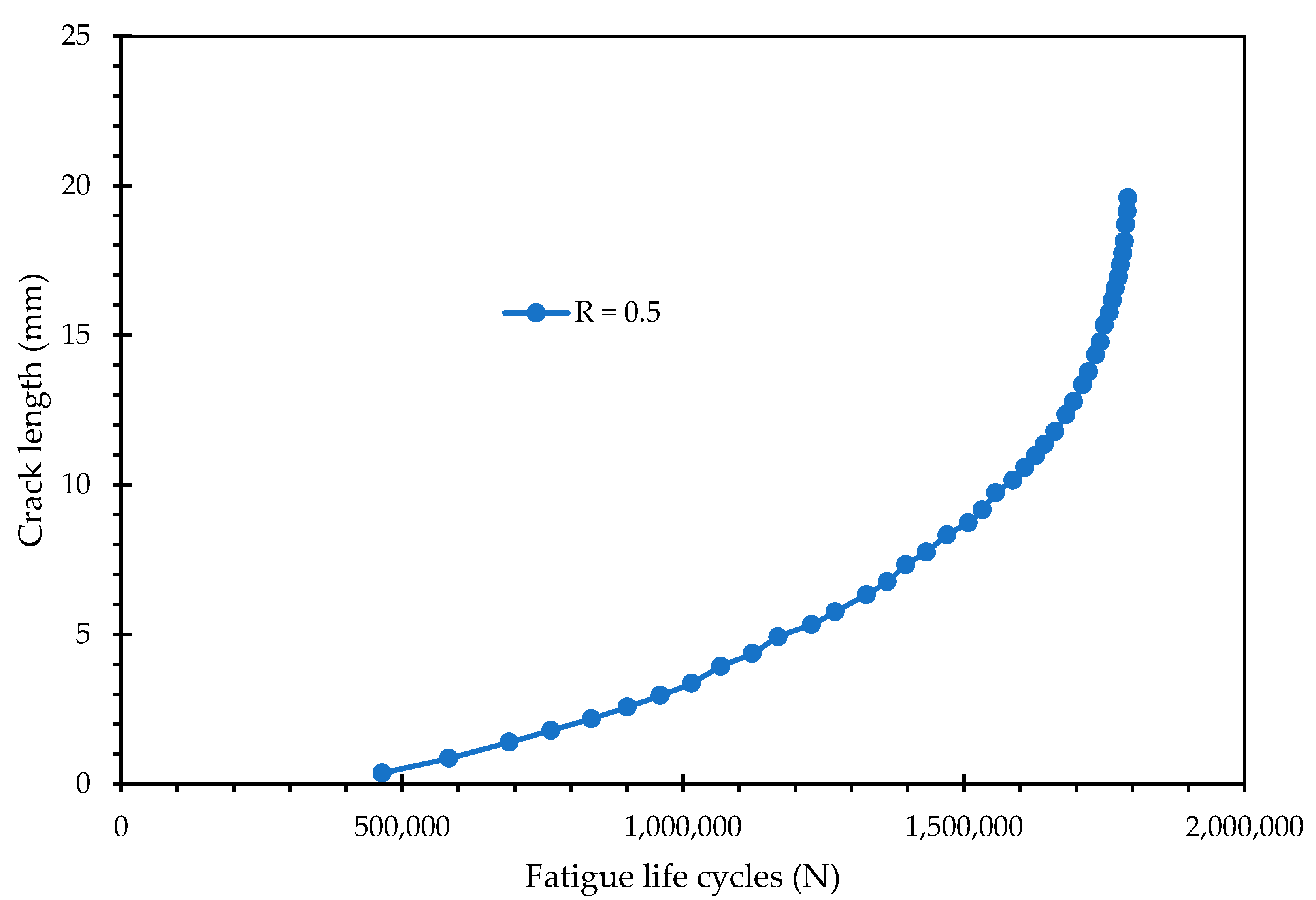 ) when the crack length reached 16.571 mm. Furthermore, the crack length criterion (