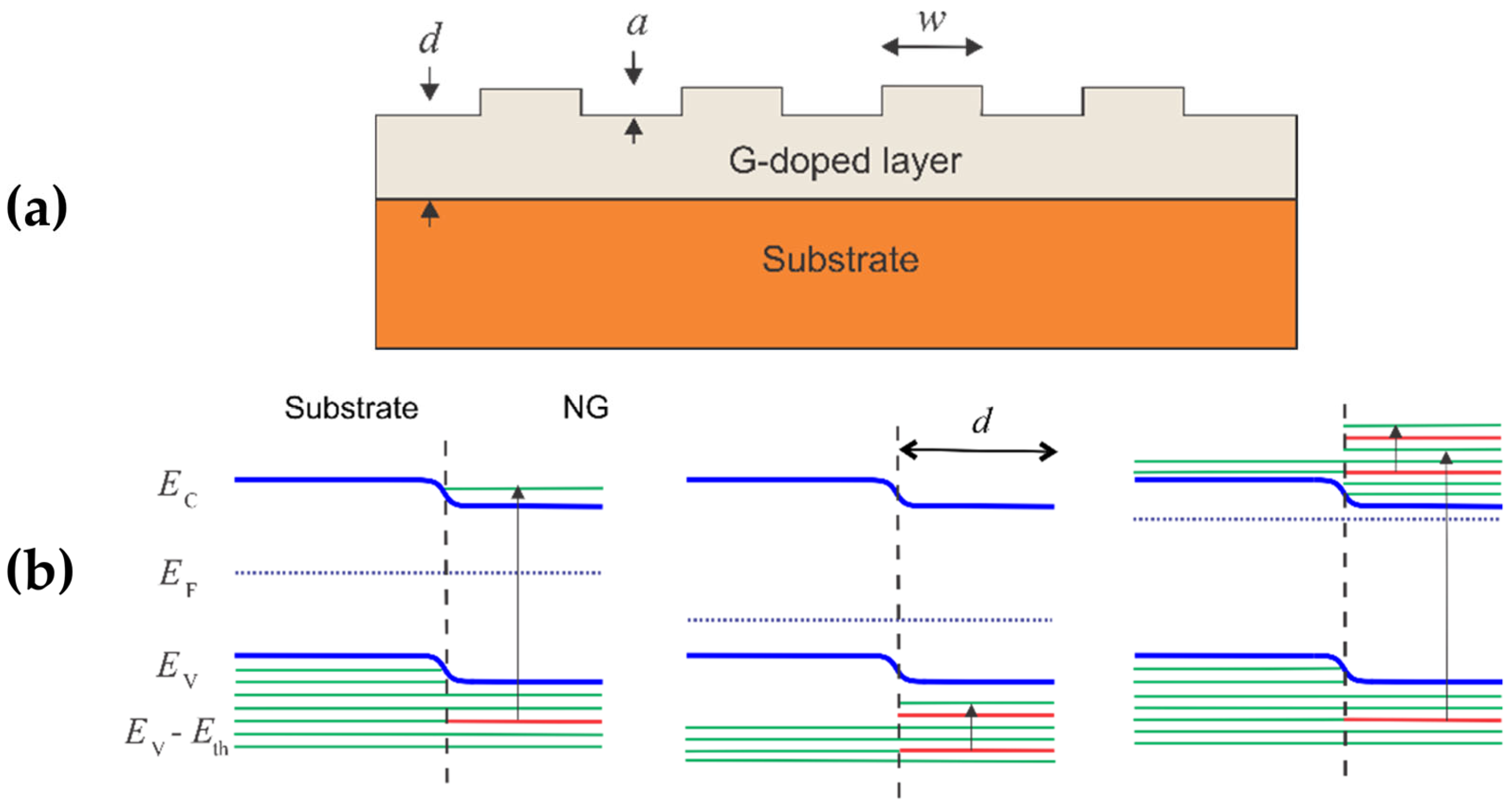 - Tavkhelidze, A.; Bibilashvili, A.; Jangidze, L.; Gorji, N.E. Fermi-Level Tuning of G-Doped Layers. Nanomaterials 2021, 11, 505. [Google Scholar] [CrossRef]