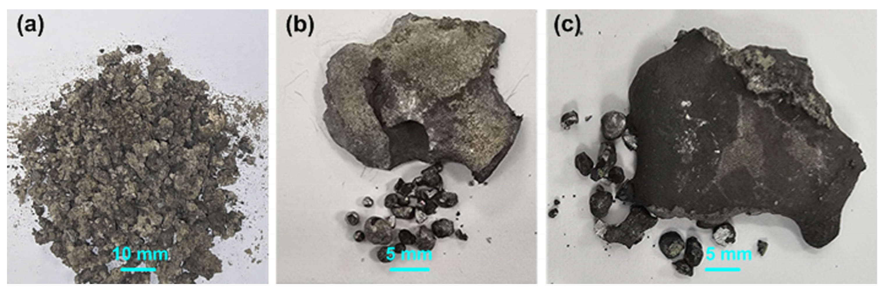 Table 9 indicate a good accounting of Fe and Cu, with some loss of Mn, Si, and Al to the gas. At an industrial scale, various methods of gas-cleaning and particulate-capturing equipment can be applied, for example, a reaction chamber hood with a positive off-gas pressure. Such methods counter volatilisation and capture fumes for recycling [