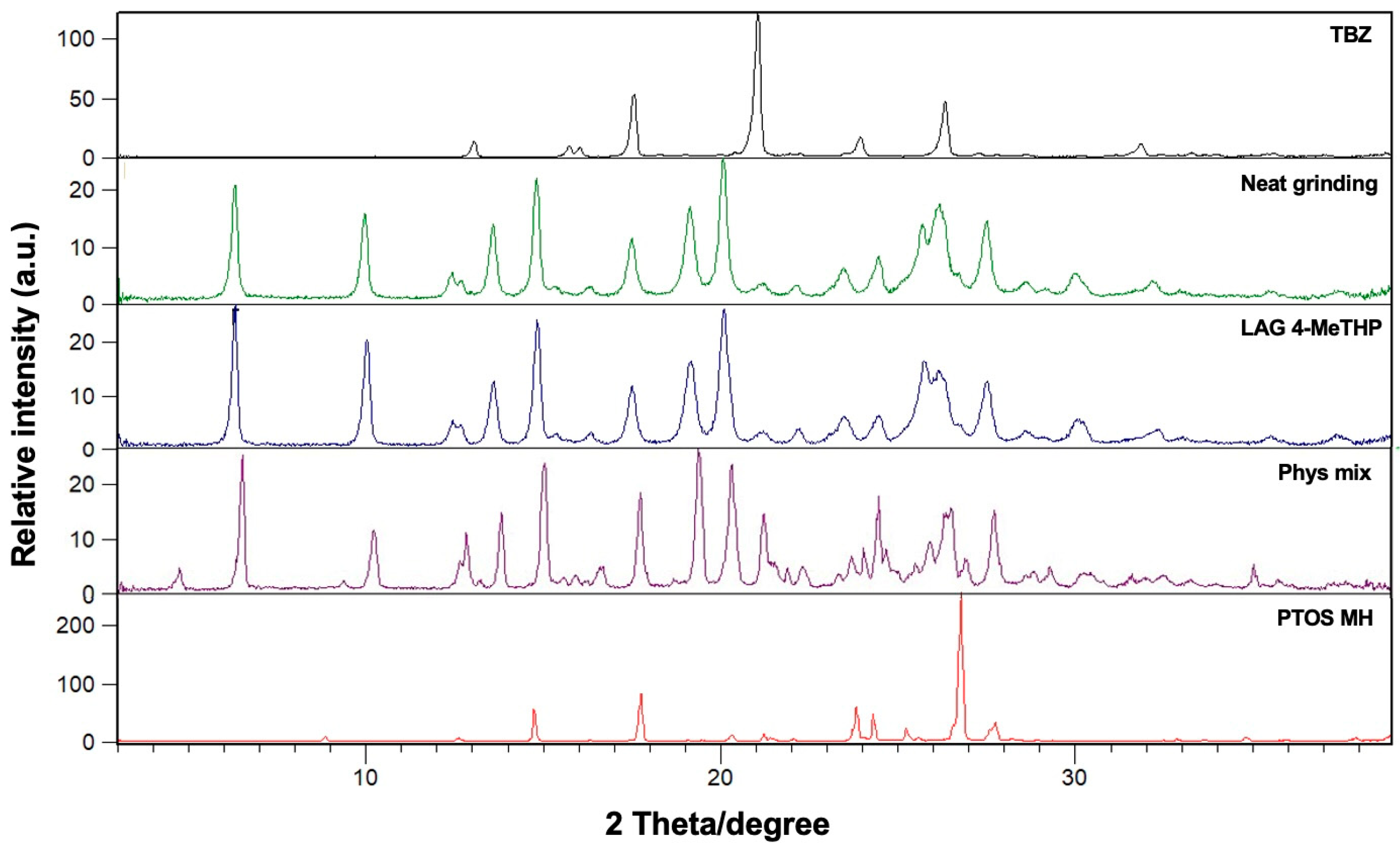 2.2.1. Mechanochemical Routes for Preparing TBZ Multicomponent Crystal