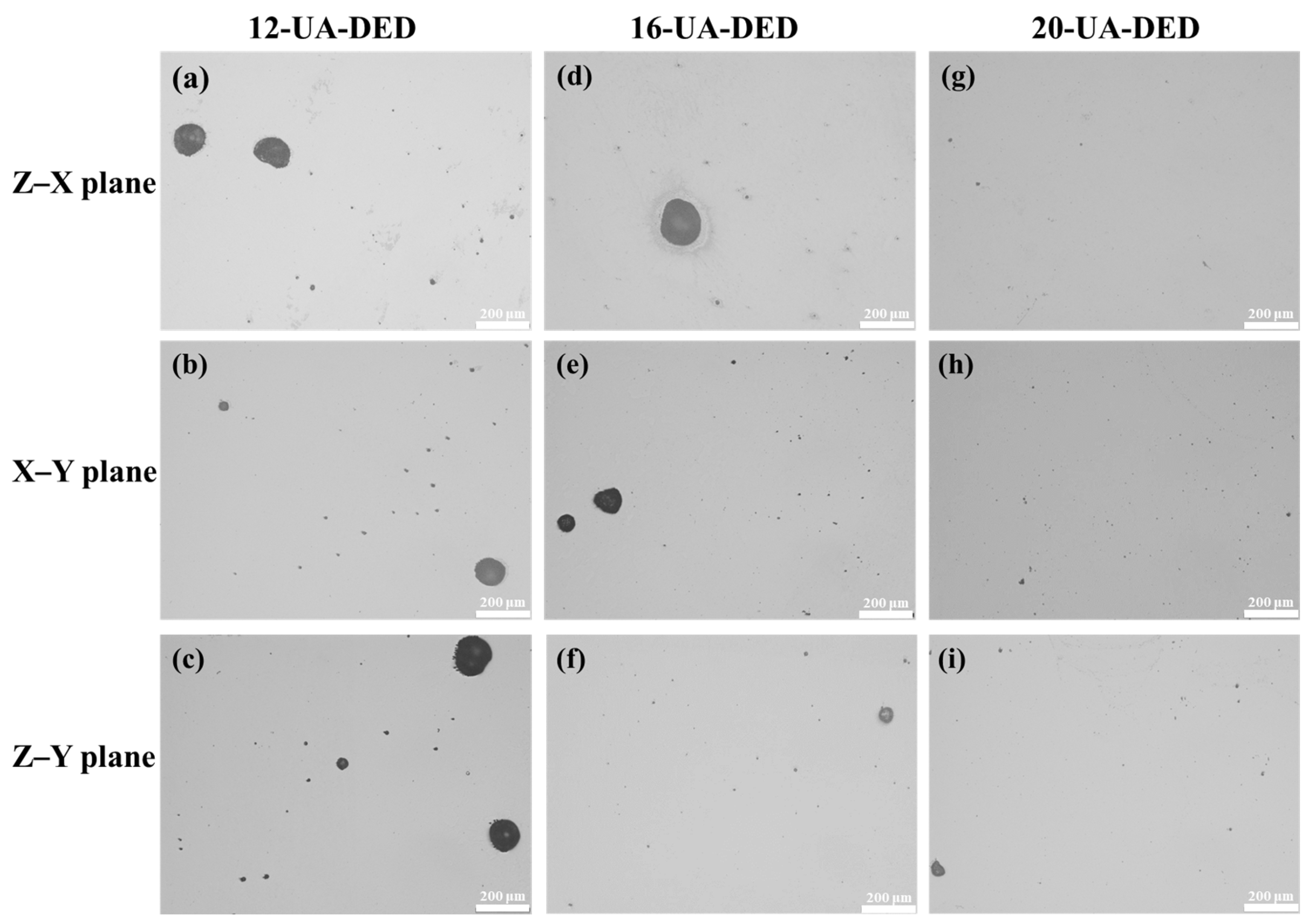 - Han, S.B.; Lee, Y.; Lee, H.; Jang, J.S.; Park, S.H.; Song, H. Tailoring solidification and strength enhancement through process parameter optimization in Nb-added 316L stainless steel fabricated by directed energy deposition (DED). J. Mater. Res. Technol. 2025, 39, 4532–4543. [Google Scholar] [CrossRef]