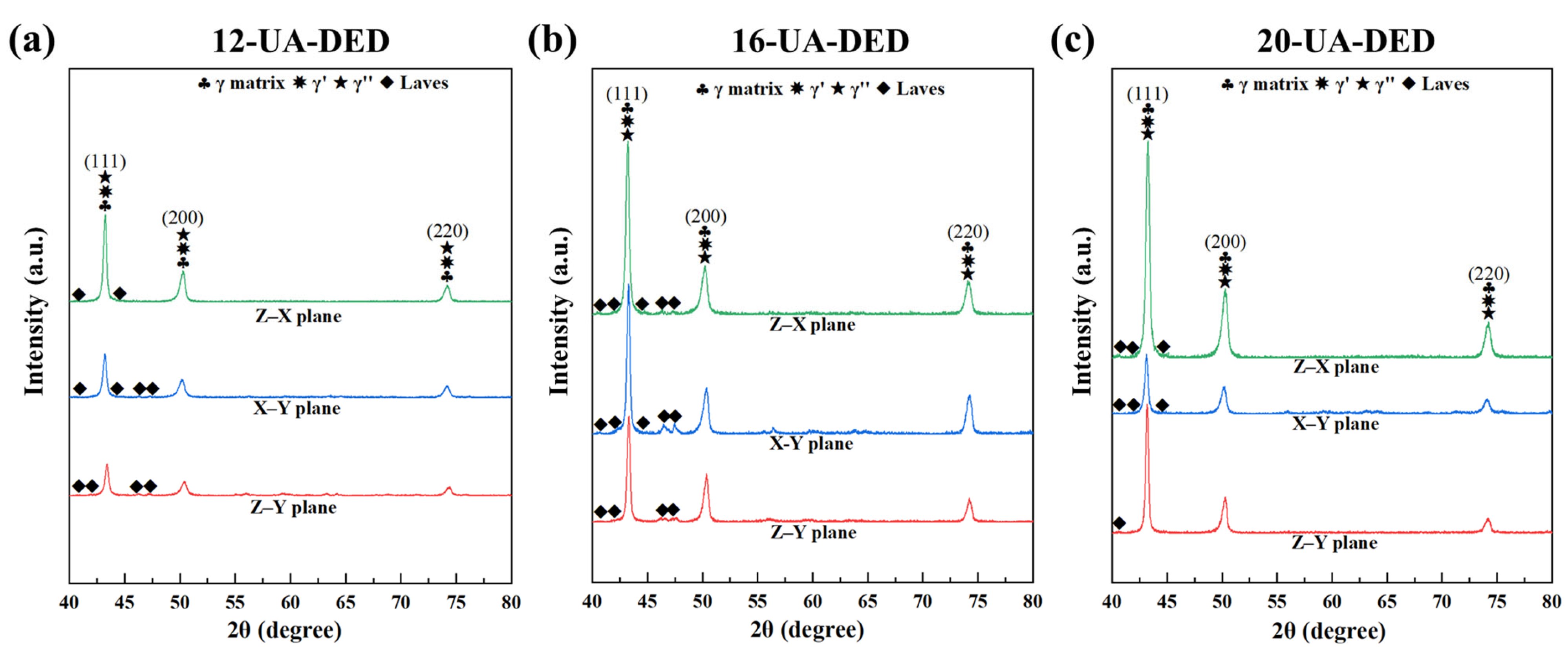 - Xiao, H.; Li, S.; Han, X.; Mazumder, J.; Song, L. Laves phase control of Inconel 718 alloy using quasi-continuous-wave laser additive manufacturing. Mater. Des. 2017, 122, 330–339. [Google Scholar] [CrossRef]