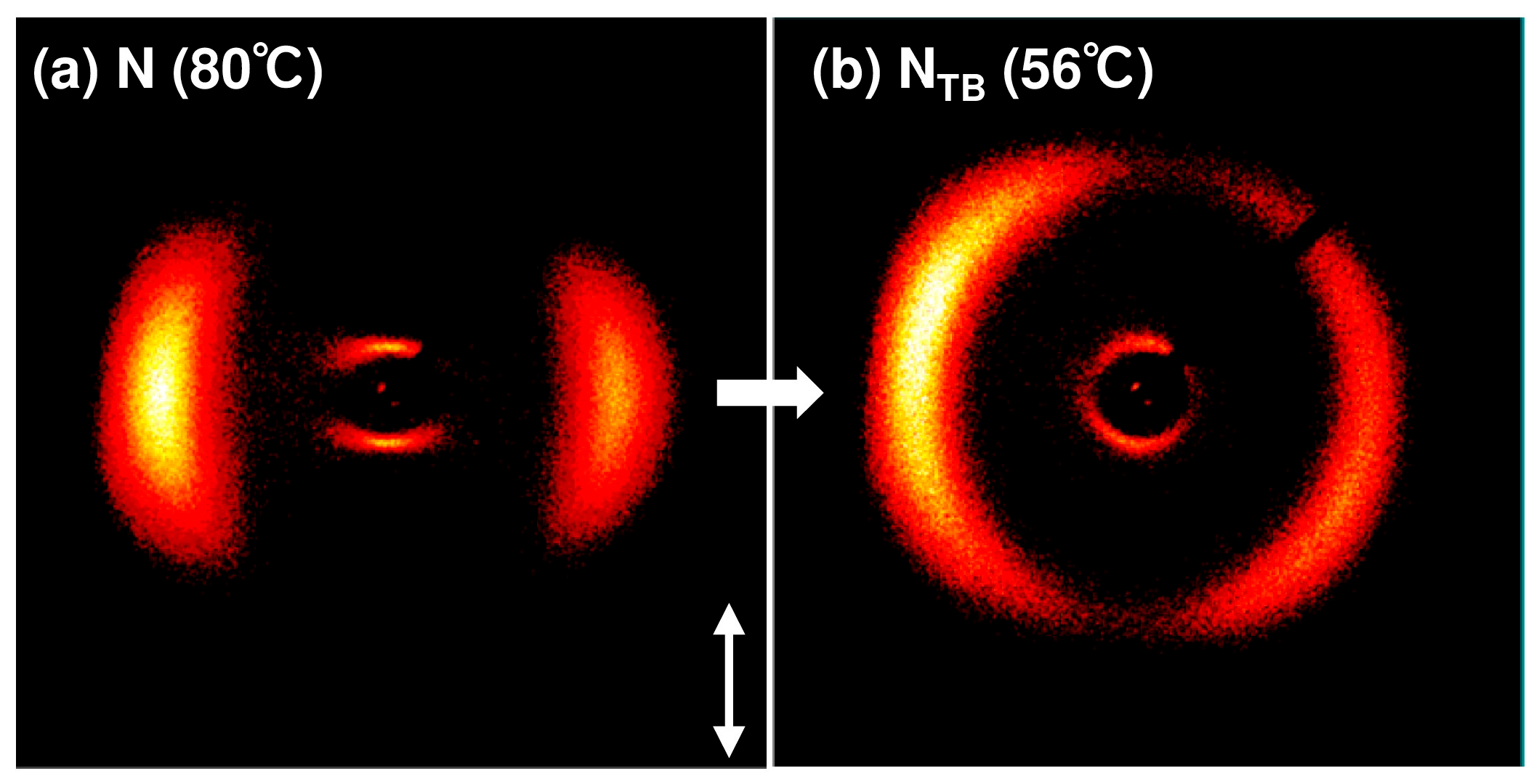 - Gorecka, E.; Vaupotič, N.; Zep, A.; Pociecha, D.; Yoshioka, J.; Yamamoto, J.; Takezoe, H. A Twist-Bend Nematic (NTB) Phase of Chiral Materials. Angew. Chem. Int. Ed. 2015, 54, 10155–10159. [Google Scholar] [CrossRef]
