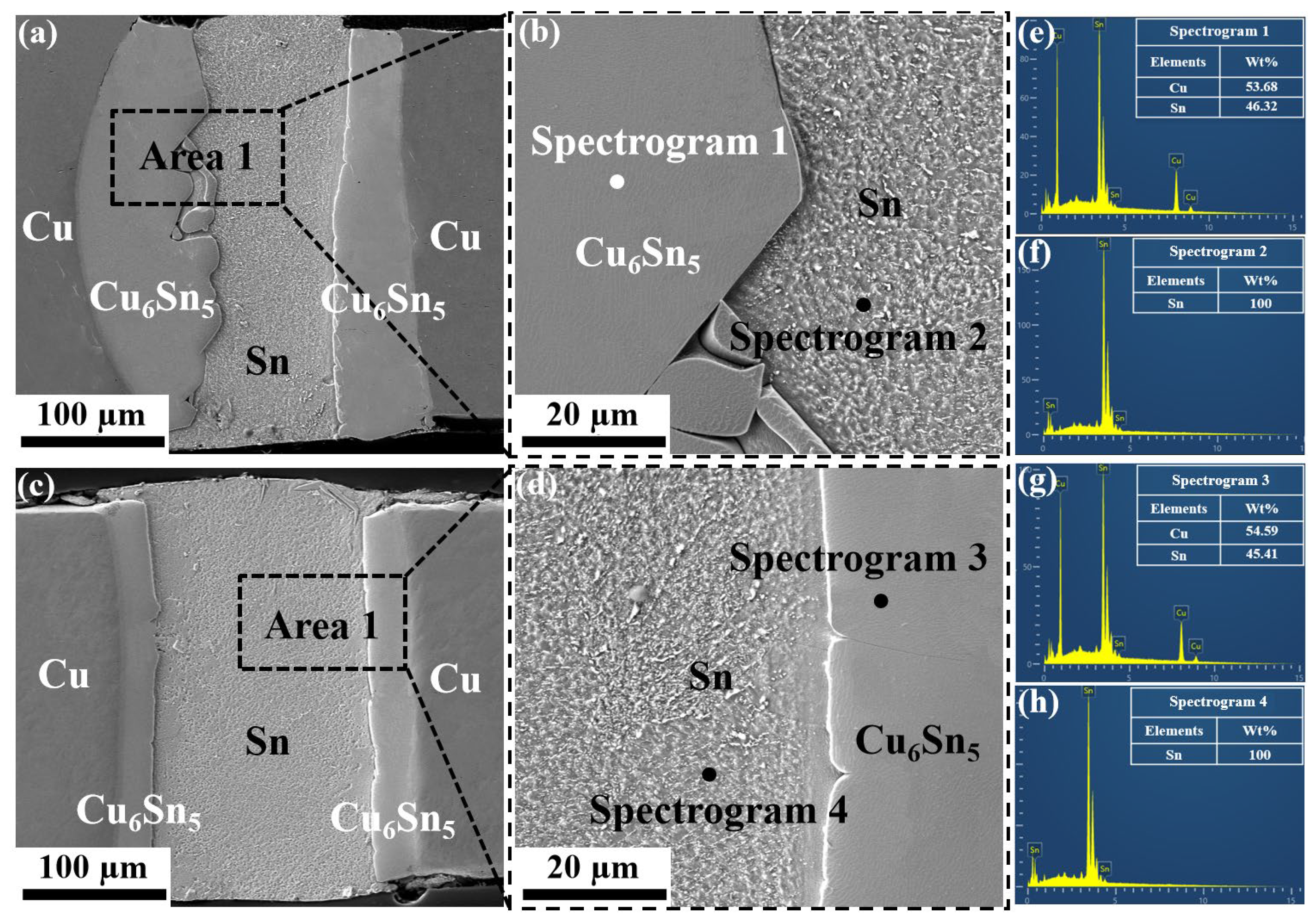 3.2.2. SEM Results Analysis of Cu/Sn/Cu Joints After EM