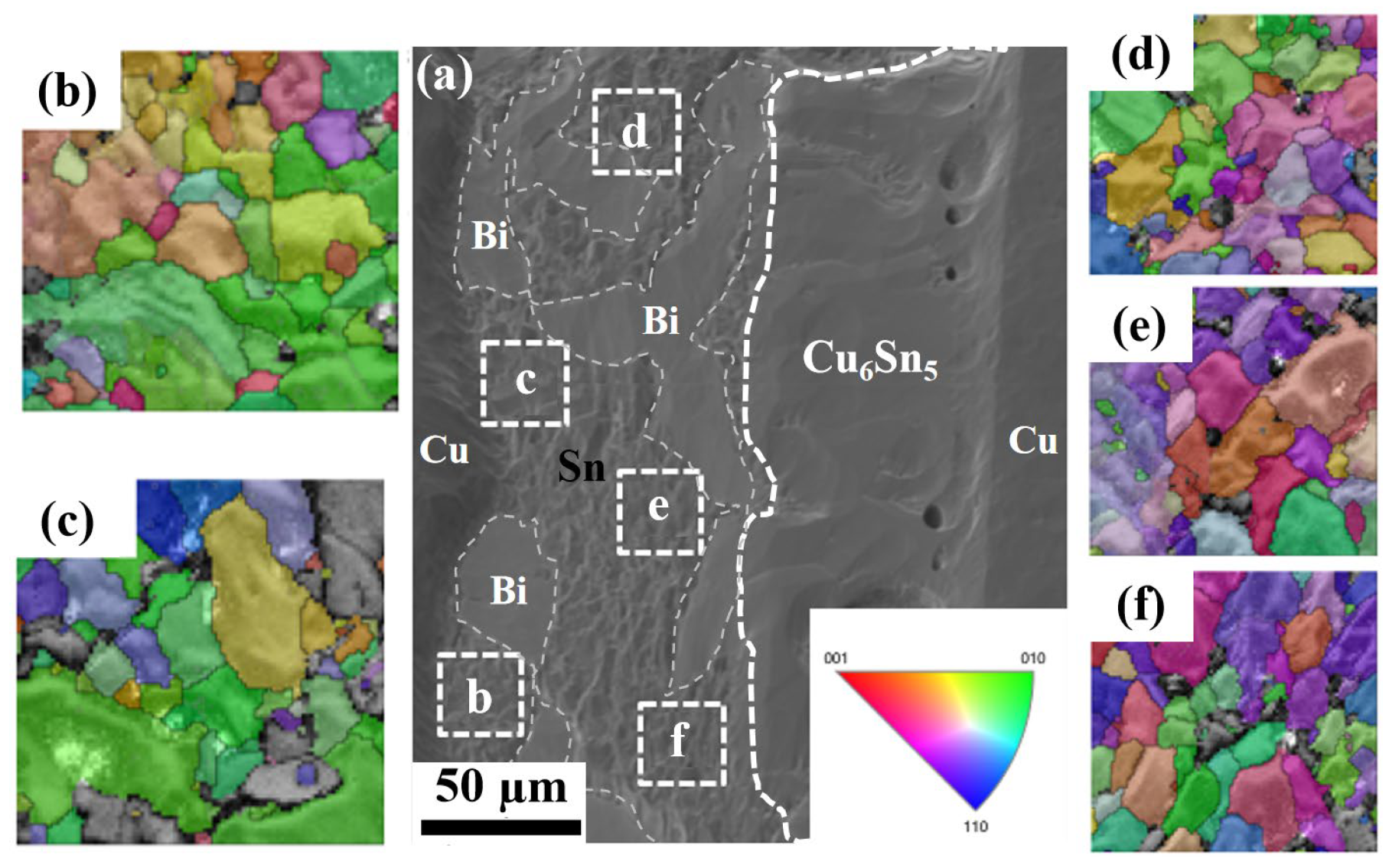 - Huang, M.L.; Sun, H.Y. Interaction between β-Sn grain orientation and electromigration behavior in flip-chip lead-free solder bumps. Acta Metall. Sin. 2018, 54, 1077–1086. [Google Scholar] [CrossRef]