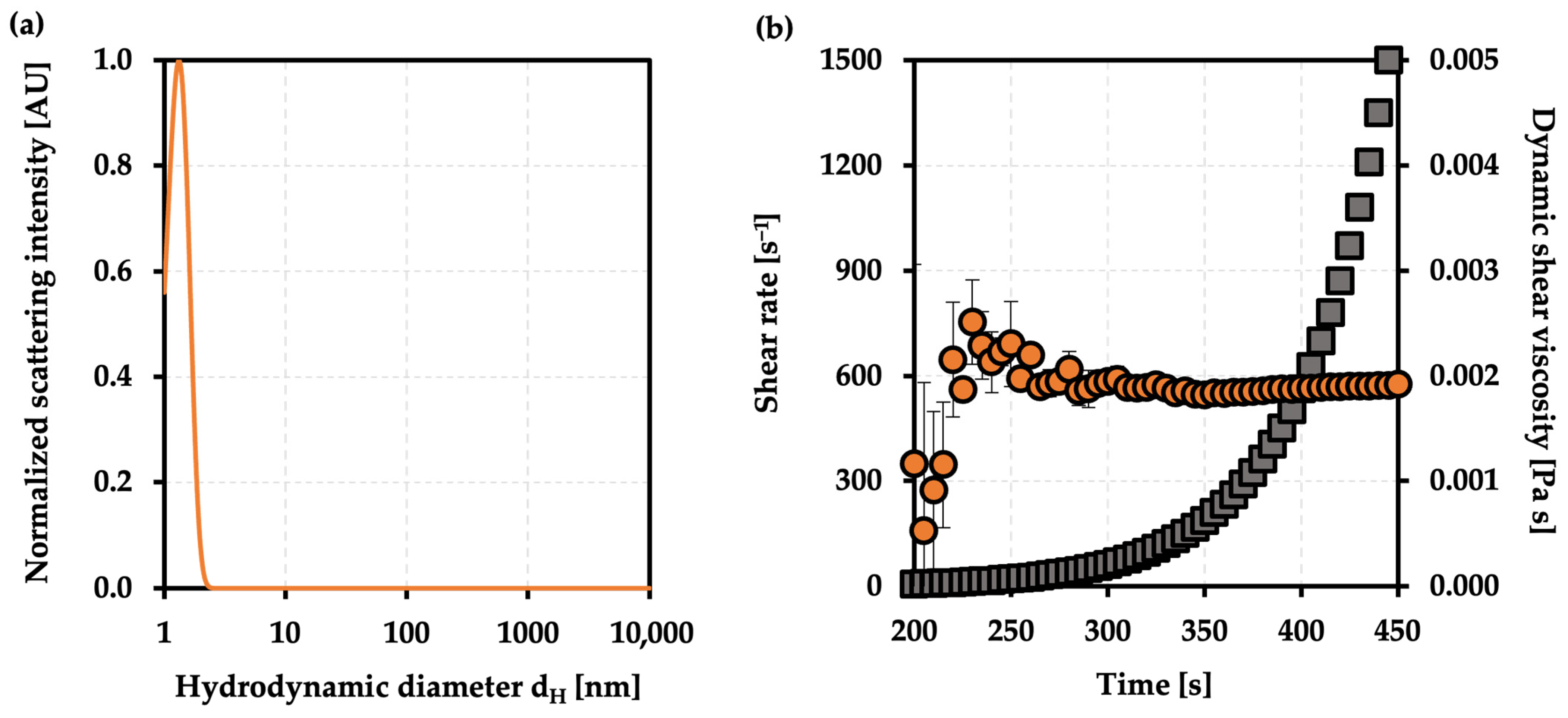 2.5. Dynamic Viscosity Determination and In Situ MADLS Measurements