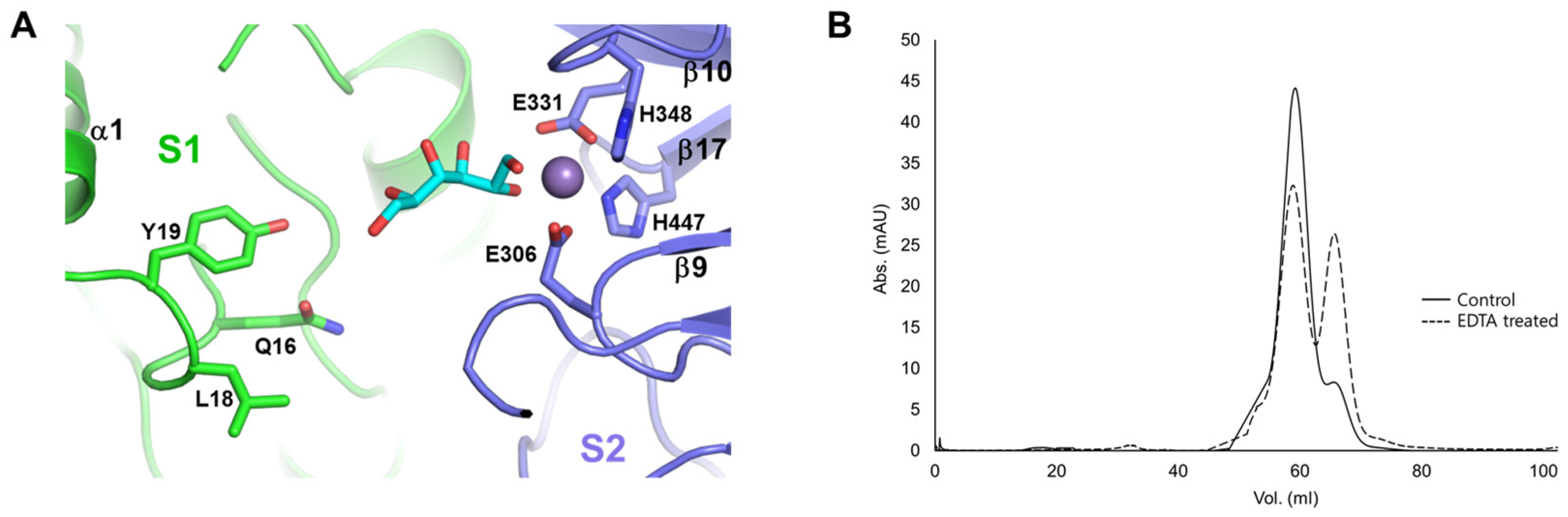 2.6. Analysis of the Effect of Metal Ions on the Oligomeric State of LSAI