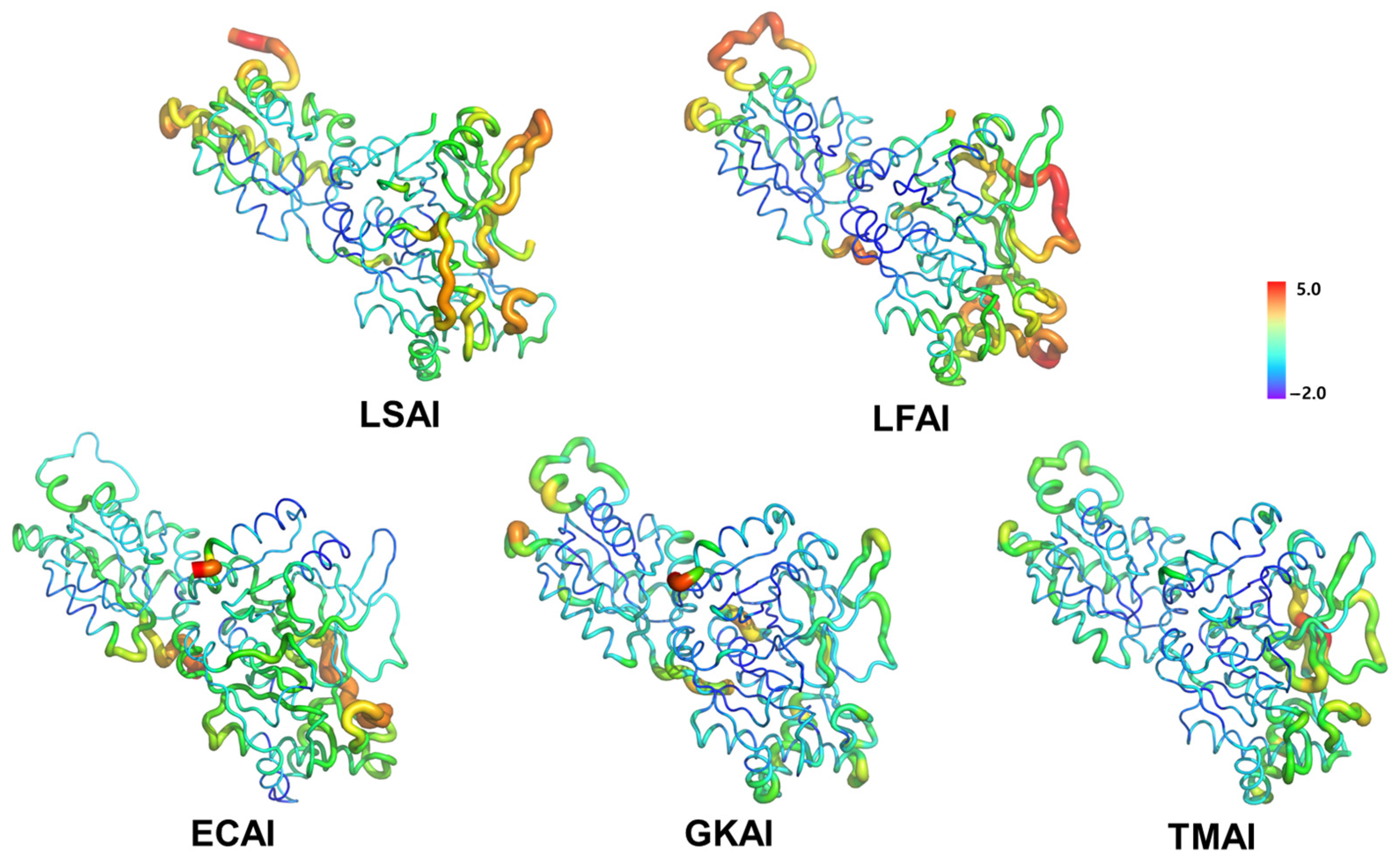 - Sun, Z.; Liu, Q.; Qu, G.; Feng, Y.; Reetz, M.T. Utility of B-Factors in Protein Science: Interpreting Rigidity, Flexibility, and Internal Motion and Engineering Thermostability. Chem. Rev. 2019, 119, 1626–1665. [Google Scholar] [CrossRef]