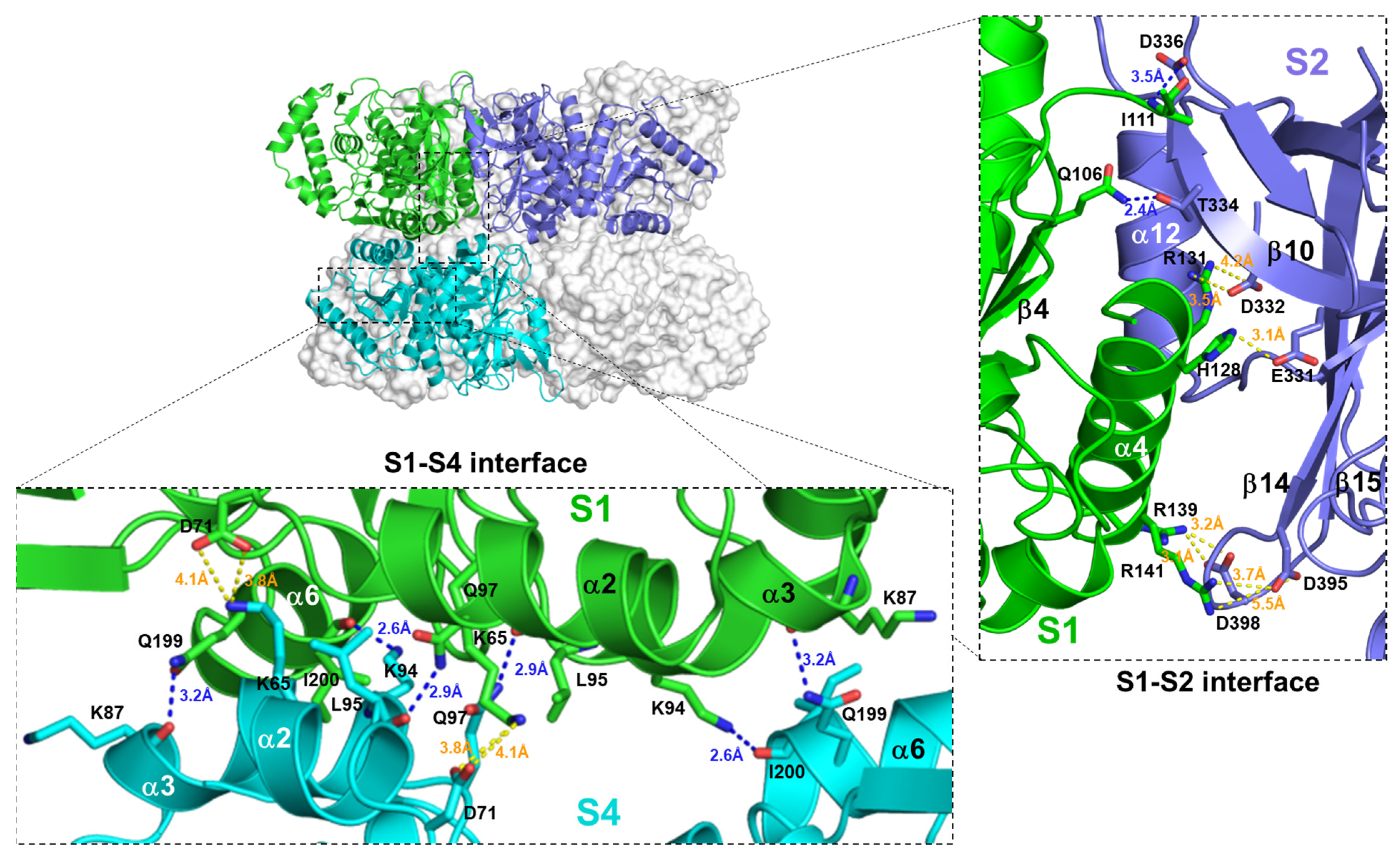 3.5. Structural Stability and Inter-Subunit Interaction Analysis of LSAI