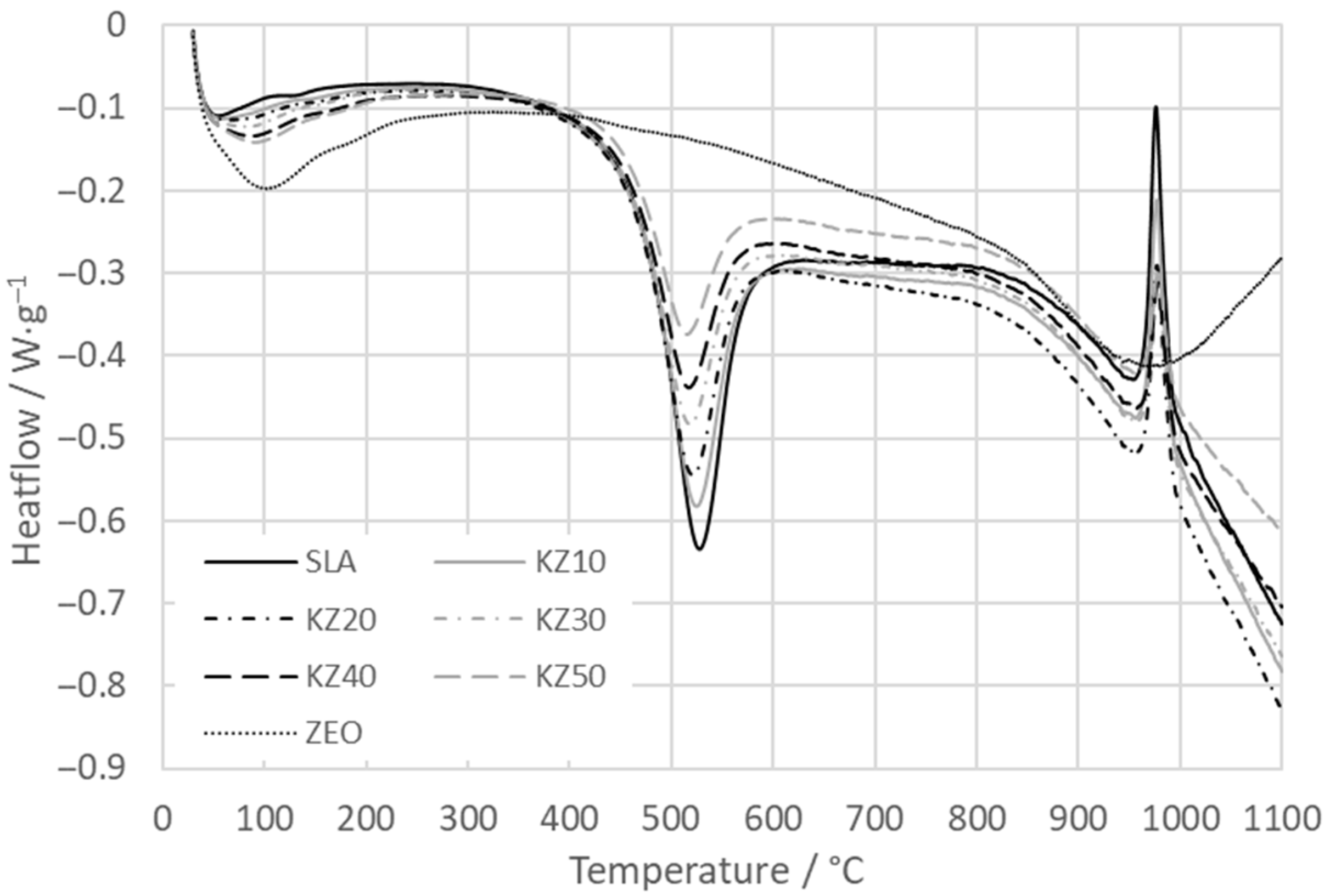 - Ondruška, J.; Húlan, T.; Sunitrová, I.; Csáki, Š.; Łagód, G.; Struhárová, A.; Trník, A. Thermophysical Properties of Kaolin–Zeolite Blends up to 1100 °C. Crystals 2021, 11, 165. [Google Scholar] [CrossRef]
