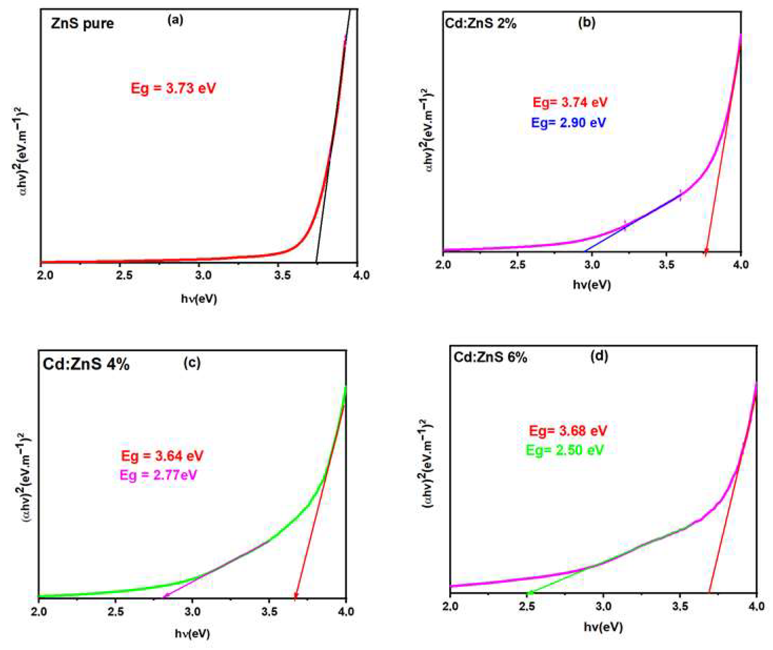 3.6.3. Optical Properties of Pure and Cd-Doped ZnS (6%)