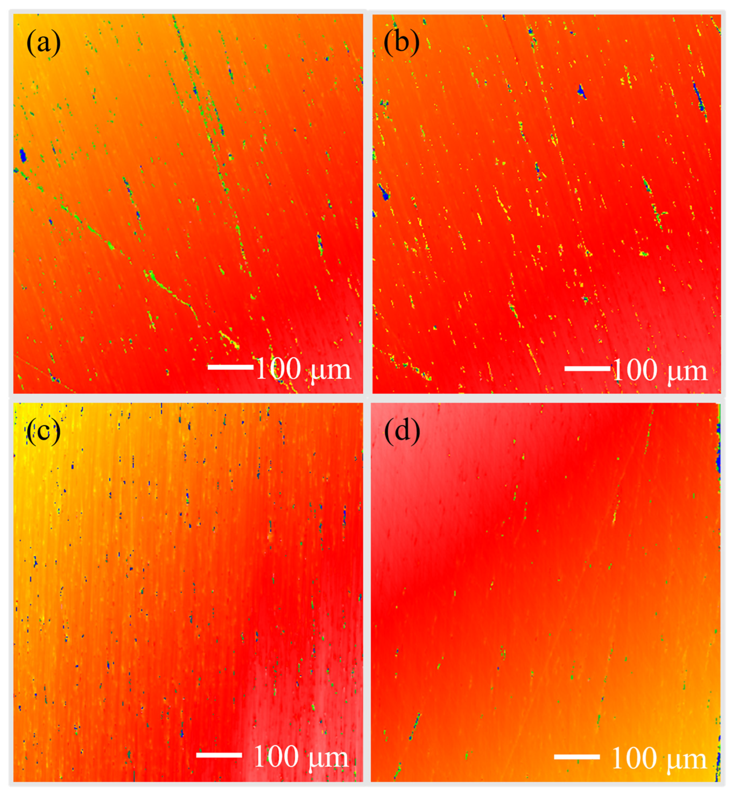 - Li, T.; Zhao, P.; Shang, F. Wear behaviors and plastic deformation mechanisms induced by nano-grinding of indium-doped gallium nitride single crystal. Tribol. Int. 2024, 197, 109791. [Google Scholar] [CrossRef]