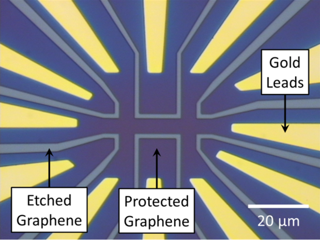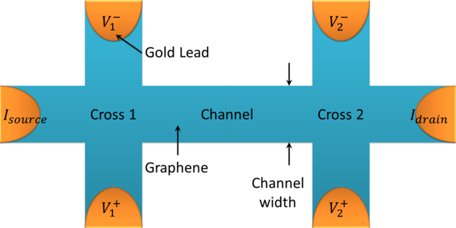 At present, the stages involved in determining sheet resistance, mobility, and carrier density require a graphene sample to be lithographically patterned and electrically contacted to form a Hall bar device (Figure 8) before measurements can be made. The invasive nature of patterning and contacting steps is known to influence the results [96,97,98,99], e.g., affect the carrier balance and even type due to unavoidable presence of the resist residue. Using KPFM, the functionality of devices on the local level can be predicted and analyzed without time-consuming and expensive fabrication and measurement procedures. Despite being local measurements, these methods do allow for a wafer scale testing of the film quality by a programmable automated movement of the probe position for the recording of results at multiple locations on a wafer of devices, relevant for upscale production of graphene films and essential for industrial applications.