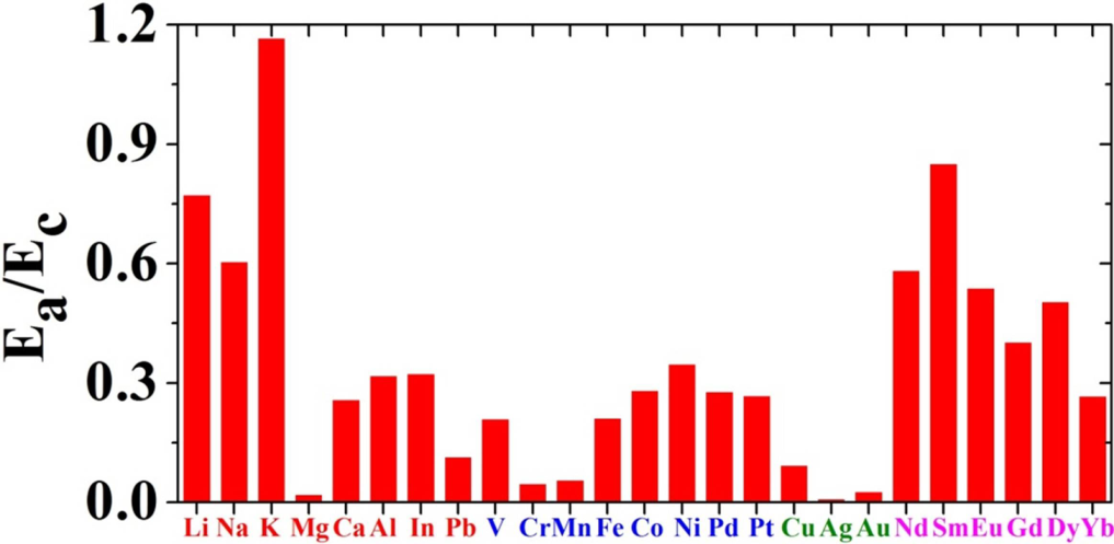 The ratios of the adsorption energy to the bulk cohesive energy (Ea/Ec).