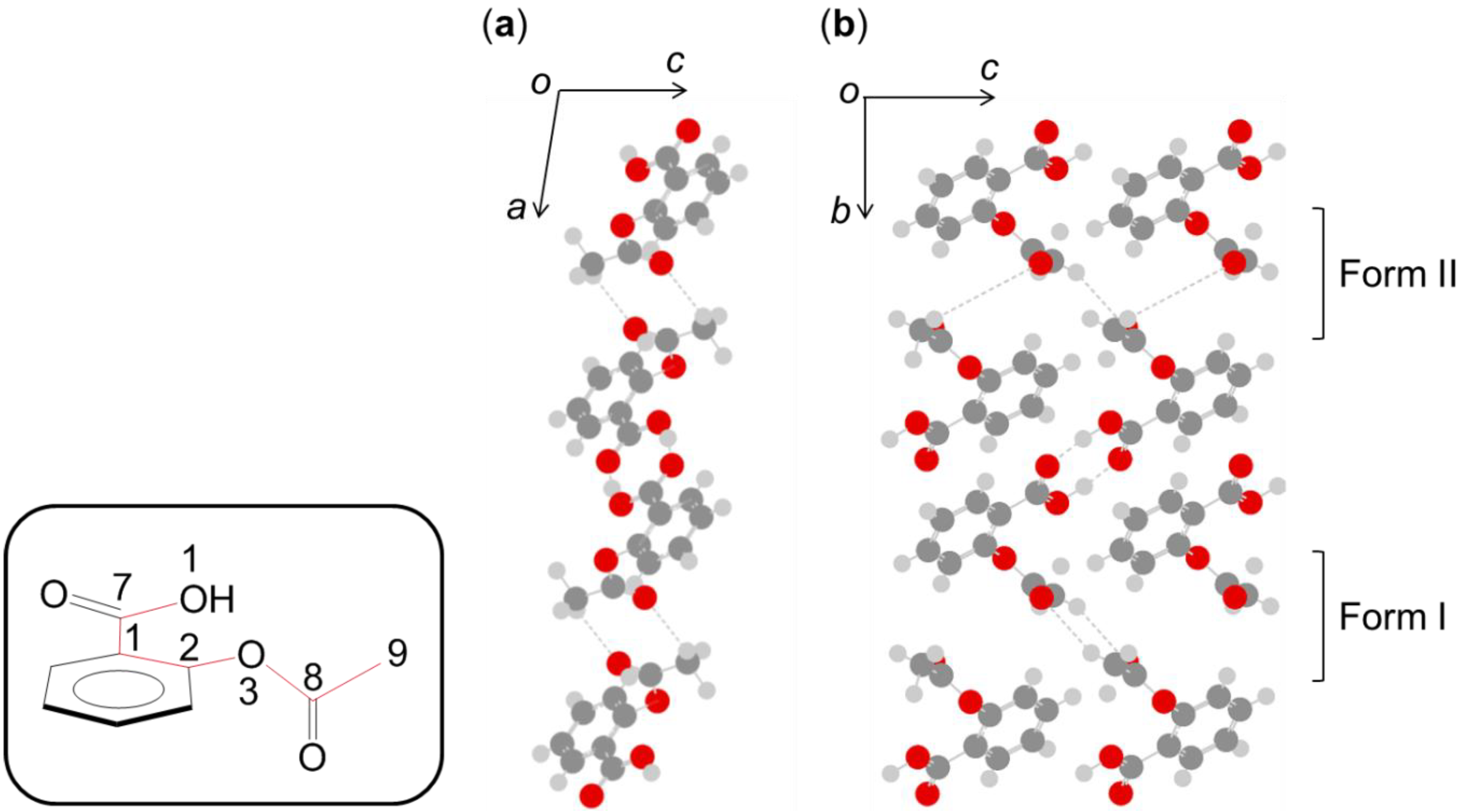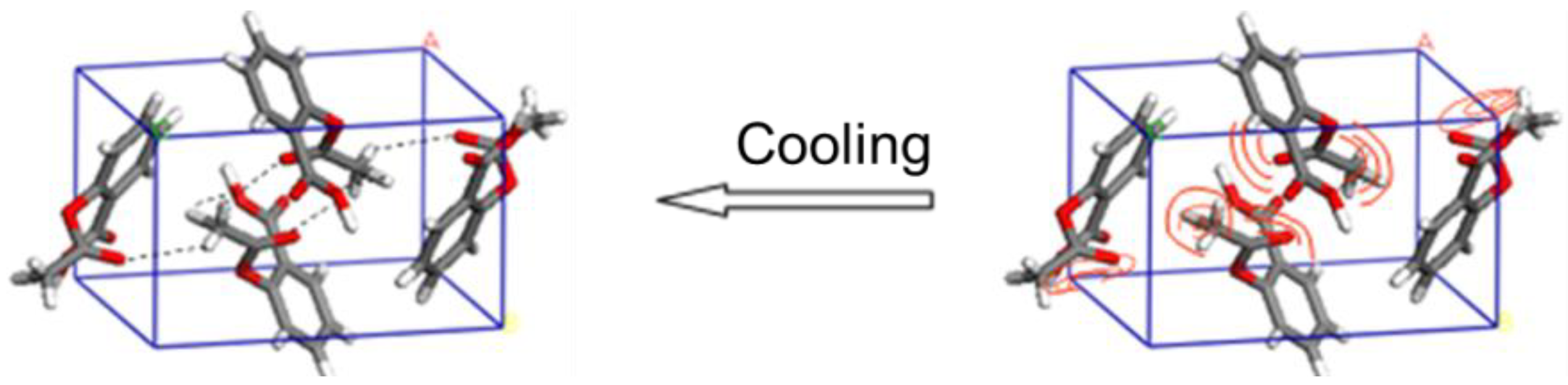 - Takahashi, M.; Ishikawa, Y. Translational vibrations between chains of hydrogen-bonded molecules in solid-state aspirin form I. Chem. Phys. Lett. 2013, 576, 21–25. [Google Scholar] [CrossRef]