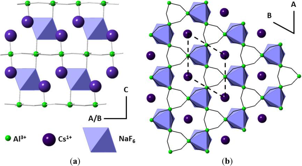 - Courbion, G.; Jacoboni, C.; Depape, R. Crystal structure of Cs2NaAl3F12. Acta Crystallogr Sect. B 1976, 32, 3190–3193. [Google Scholar] [CrossRef]