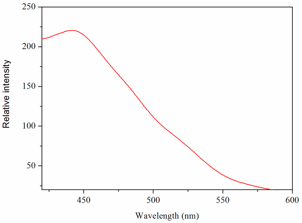 The luminescent spectrum of complex 1 was investigated in the solid state at room temperature. As shown in Figure 6, the ligand displays emission peak at 439 nm with excitation at 349 nm, which may be attributed to the π*-π or π-n transition. However, the N-acetyl-l-phenylalanine ligand does not display any emissions with excitation from 200 to 400 nm.