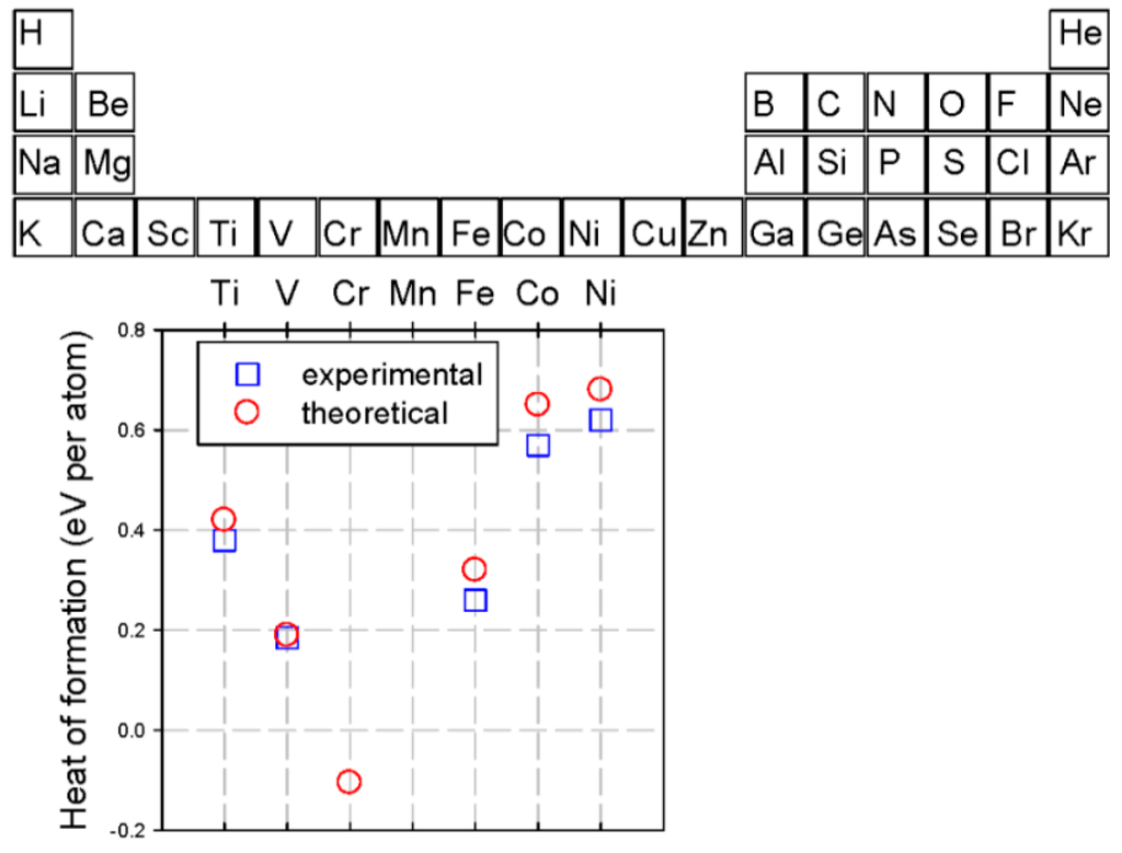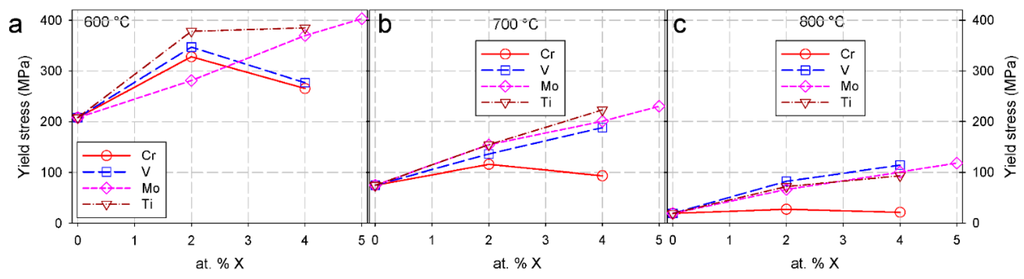 | -- | Formation Energy at Different Sublattices (meV/atom) [40] | Relative Changes of the Lattice Parameter with Respect to the Solute Content | Relative Changes of the Young’s Modulus [40] | ||||
