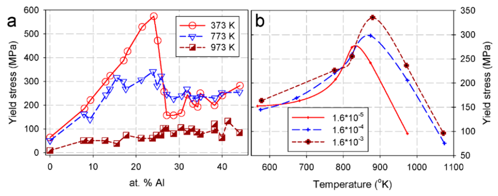 - Fleischer, R.L. Substitutional solutes in AlRu-II. Hardening and correlations with defect structure. Acta Metall. Mater. 1993, 41, 1197–1205. [Google Scholar] [CrossRef]