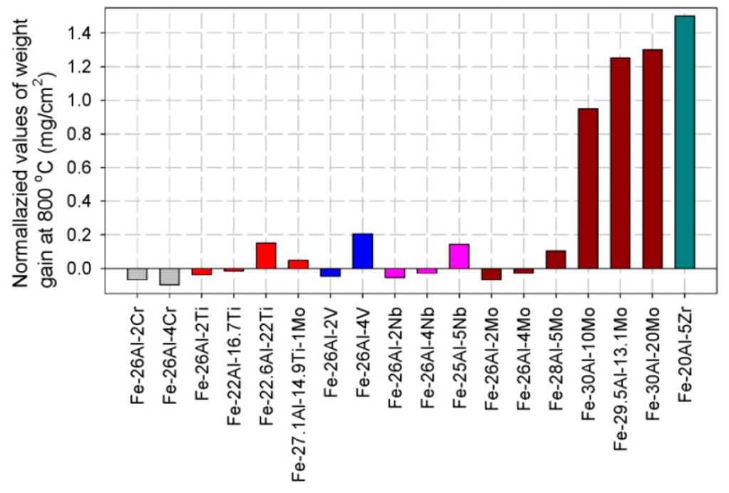 - Pint, B.A.; Wright, I.G. The Oxidation Behavior of Fe-Al Alloys. Mater. Sci. Forum 2004, 461–464, 799–806. [Google Scholar] [CrossRef]