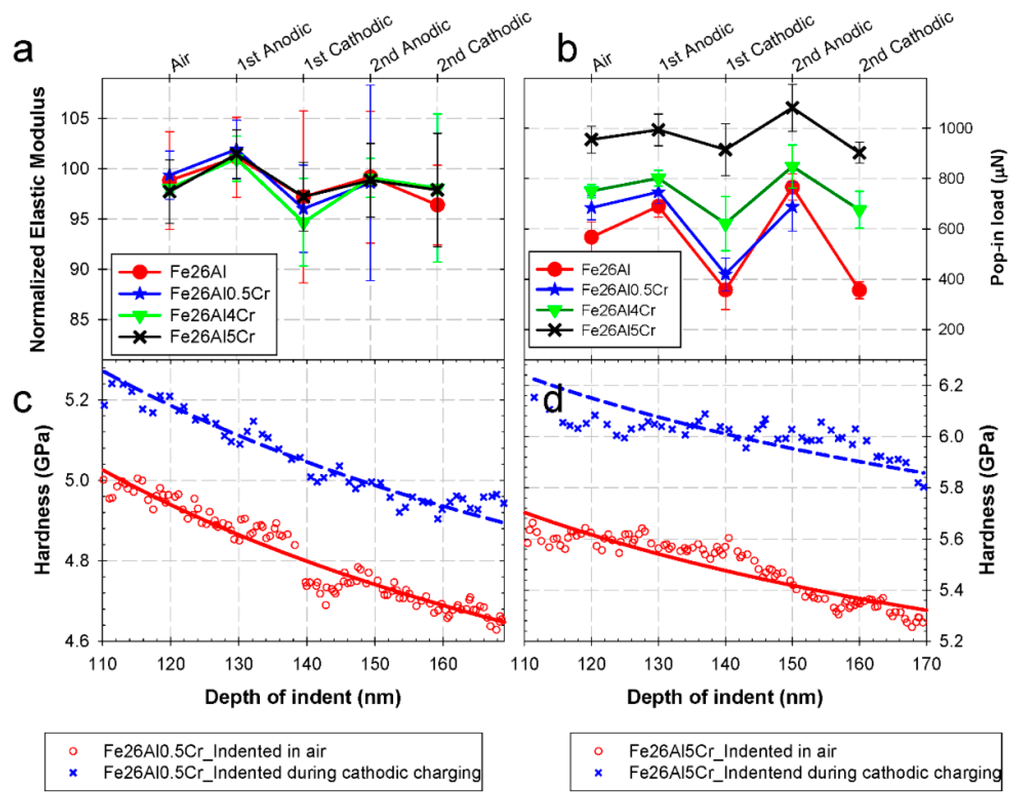 - Barnoush, A.; Vehoff, H. Hydrogen embrittlement of aluminum in aqueous environments examined by in situ electrochemical nanoindentation. Scr. Mater. 2008, 58, 747–750. [Google Scholar] [CrossRef]