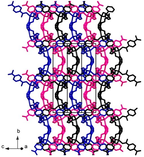- Zhang, J.; Yang, J.; Wang, X.; Zhang, H.; Chi, X.; Yang, Q.; Chen, Y.; Xiao, D. A series of polythreaded architectures based on a long flexible tetracarboxylate ligand and different N-donor ligands. Inorg. Chim. Acta 2016, 447, 66–76. [Google Scholar] [CrossRef]