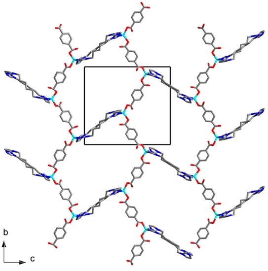 The projection of the single metal-organic framework in 1 along ac plane. Hydrogen atoms are omitted.