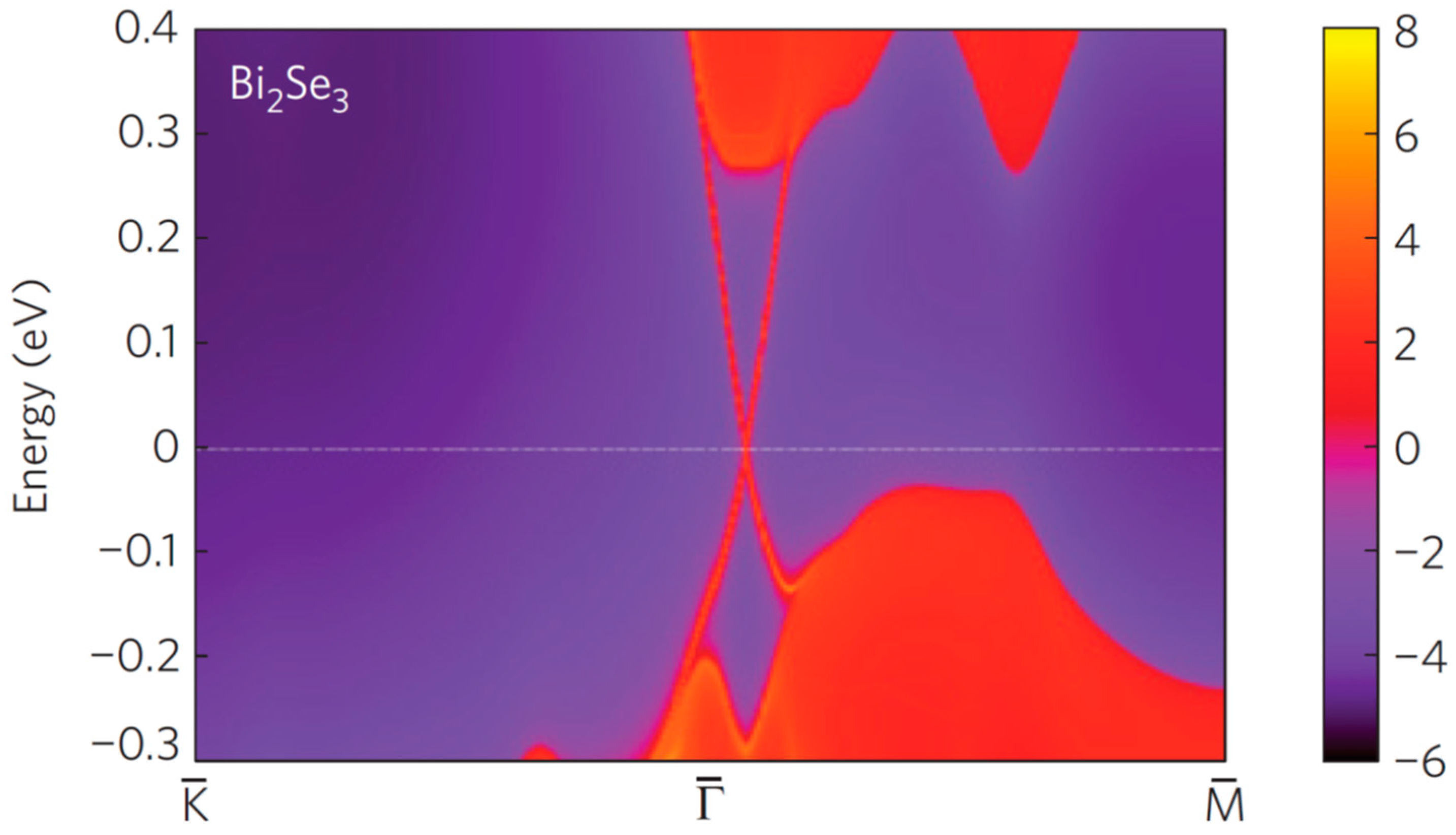 - Xia, Y.; Qian, D.; Hsieh, D.; Wray, L.; Pal, A.; Lin, H.; Bansil, A.; Grauer, D.; Hor, Y.S.; Cava, R.J.; et al. Observation of a large-gap topological-insulator class with a single Dirac cone on the surface. Nat. Phys. 2009, 5, 398–402. [Google Scholar] [CrossRef]
