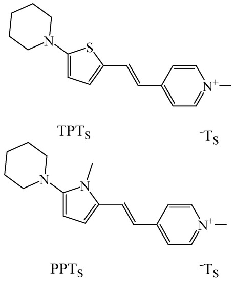 - Tsuji, K.; Nishimura, N.; Duan, X.M.; Okada, S.; Oikawa, H.; Matsuda, H.; Nakanishi, H. Synthesis and properties of novel stilbazolium analogues as second-order nonlinear optical hromophores. Bull. Chem. Soc. Jpn. 2005, 78, 180–186. [Google Scholar] [CrossRef]