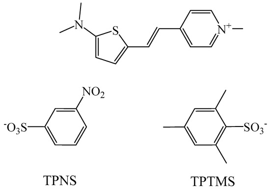 Li et al. synthesized two series of thienyl-substituted pyridinium salts (Figure 8) with different counter-anions to investigate the effect of the hydrous/anhydrous phase on crystal packing [31]. Single crystals of two kinds of salts (Figure 9) were successfully obtained from methanol by a slow evaporation method. Crystal structure analysis revealed that they crystallized in the monoclinic space group P1 and P , respectively. TPNS forms a hydrated non-centrosymmetric phase with powder SHG efficiency 0.40 times of DAST at a wavelength of λ = 2109 nm. TPDMS gives an anhydrous phase and crystallizes in centrosymmetric structures without a SHG signal. Their study indicated that thienyl-substituted pyridinium salts tend to crystallize in non-centrosymmetric structure with a hydrous phase [46].