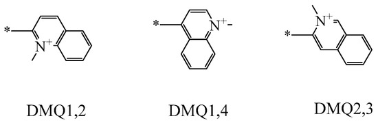 Molecular structures of DMQ1,2, DMQ1,4, and DMQ2,3.