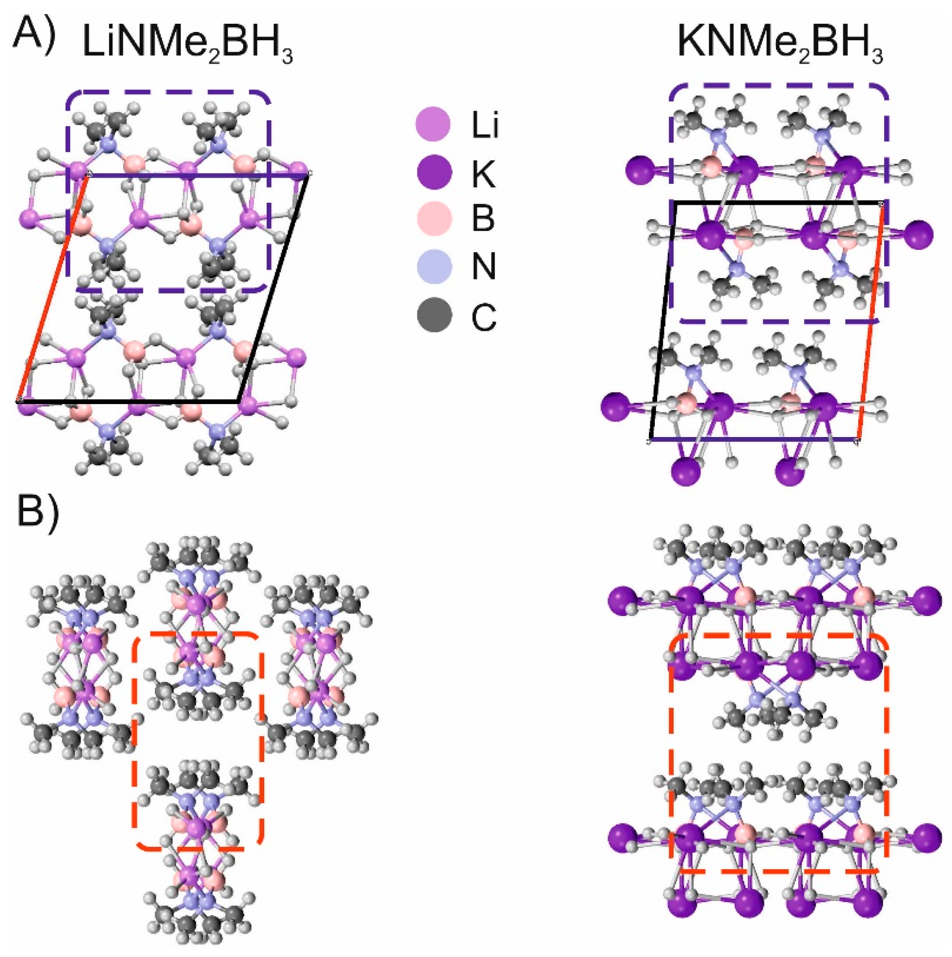 Non-Covalent Interactions in Hydrogen Storage Materials LiN(CH3)2BH3 and KN(CH3)2BH3