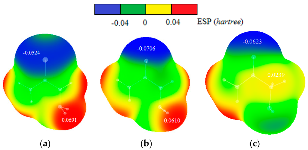 - Bulat, F.A.; Toro-Labbé, A.; Brinck, T.; Murray, J.S.; Politzer, P. Quantitative analysis of molecular surfaces: Areas, volumes, electrostatic potentials and average local ionization energies. J. Mol. Model. 2010, 16, 1679–1691. [Google Scholar] [CrossRef] [PubMed]