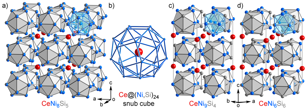 | Cluster 4: | Ce2Ni7 (hP36, ), CeNi2 (cF24, ), CeNi3 (hP24, ), CeNi5 (hP6, ) |