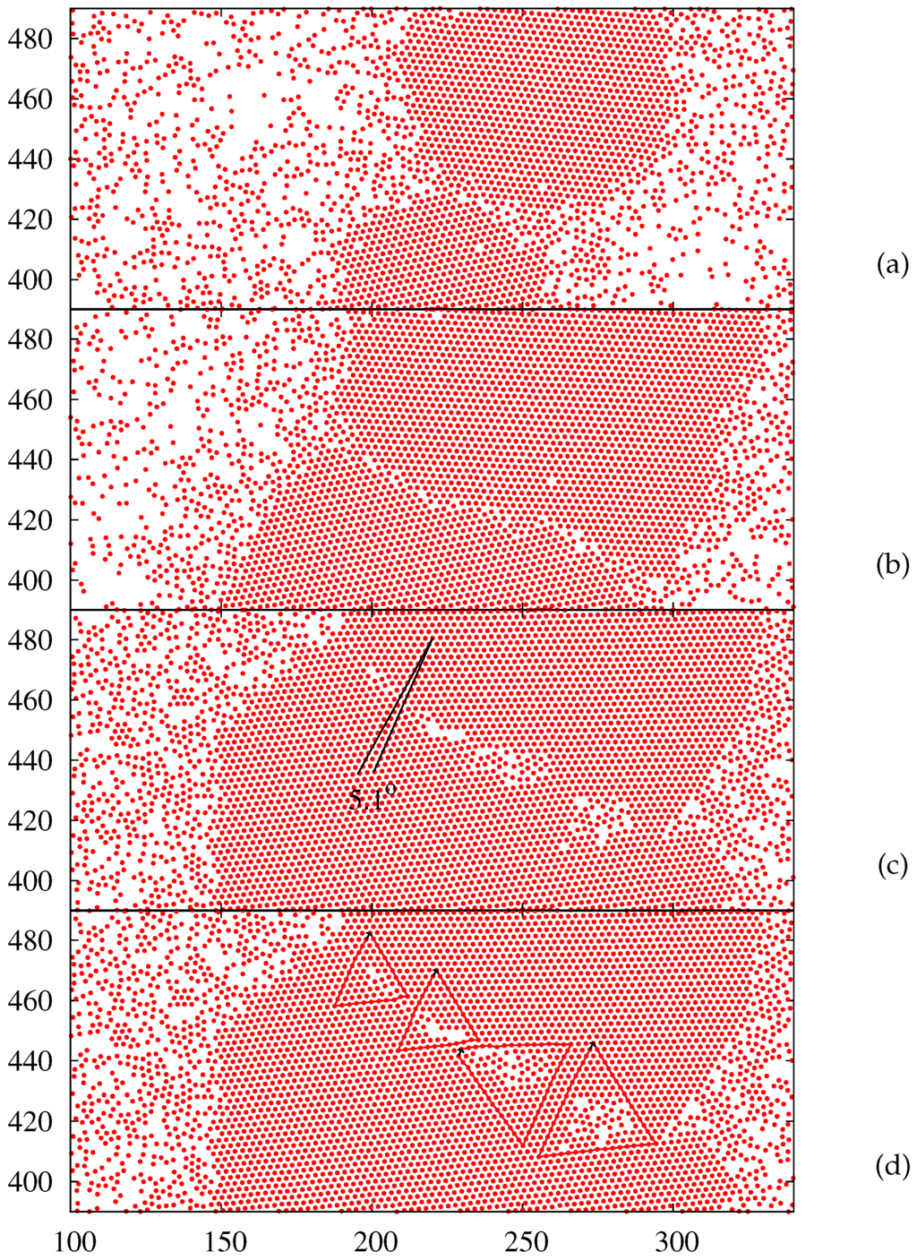 - Schall, P.; Cohen, I.; Weitz, D.A.; Spaepen, F. Visualizing dislocation nucleation by indenting colloidal crystals. Nature 2006, 440, 319–323. [Google Scholar] [CrossRef] [PubMed]