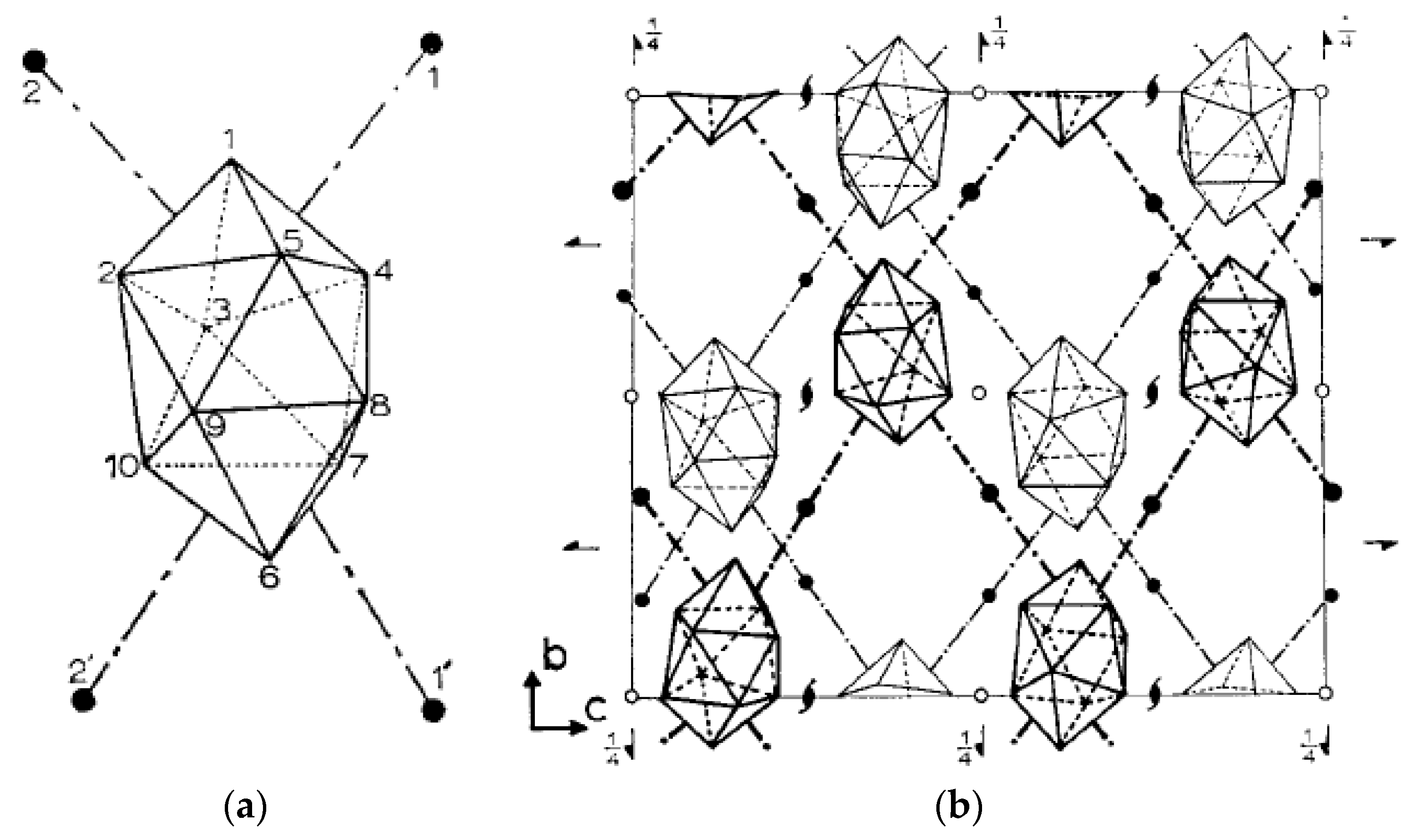The coordination sphere of the [B10H10]2− anion (a) and crystal packing (b) in the structure of {Cu2[B10H10]}n. Reproduced with permission from reference [18]. Copyright © (1962) AIP Publishing LLC.
