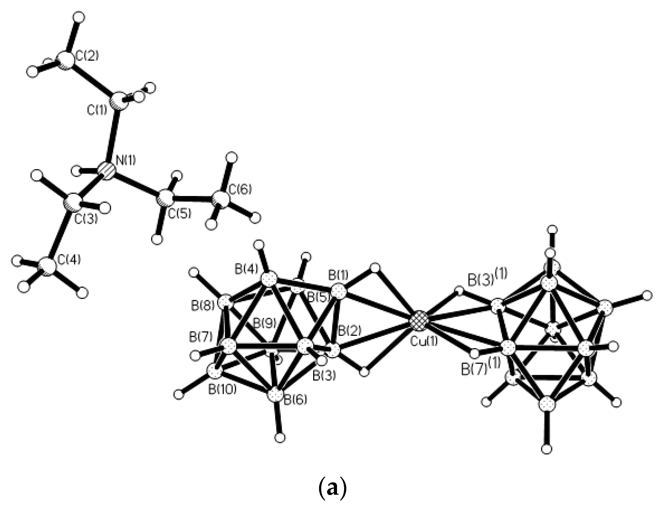 Fragments of X-ray structures of {(Et3NH)(Cu[B10H10])}n (a) and {(Et3NH)(Cu[B10H10])}n (b). Reproduced with permission from reference [22]. Copyright © (2008) Springer.