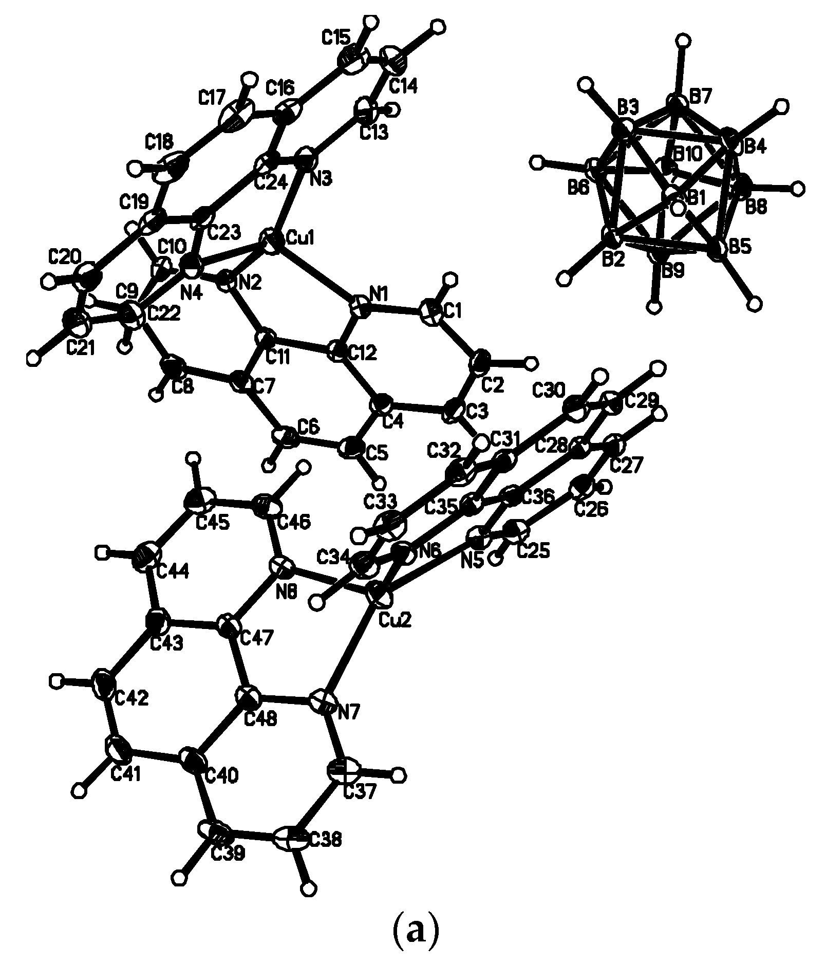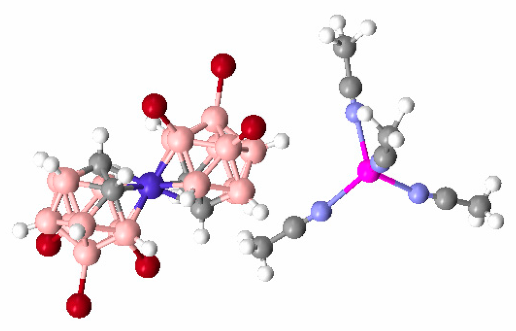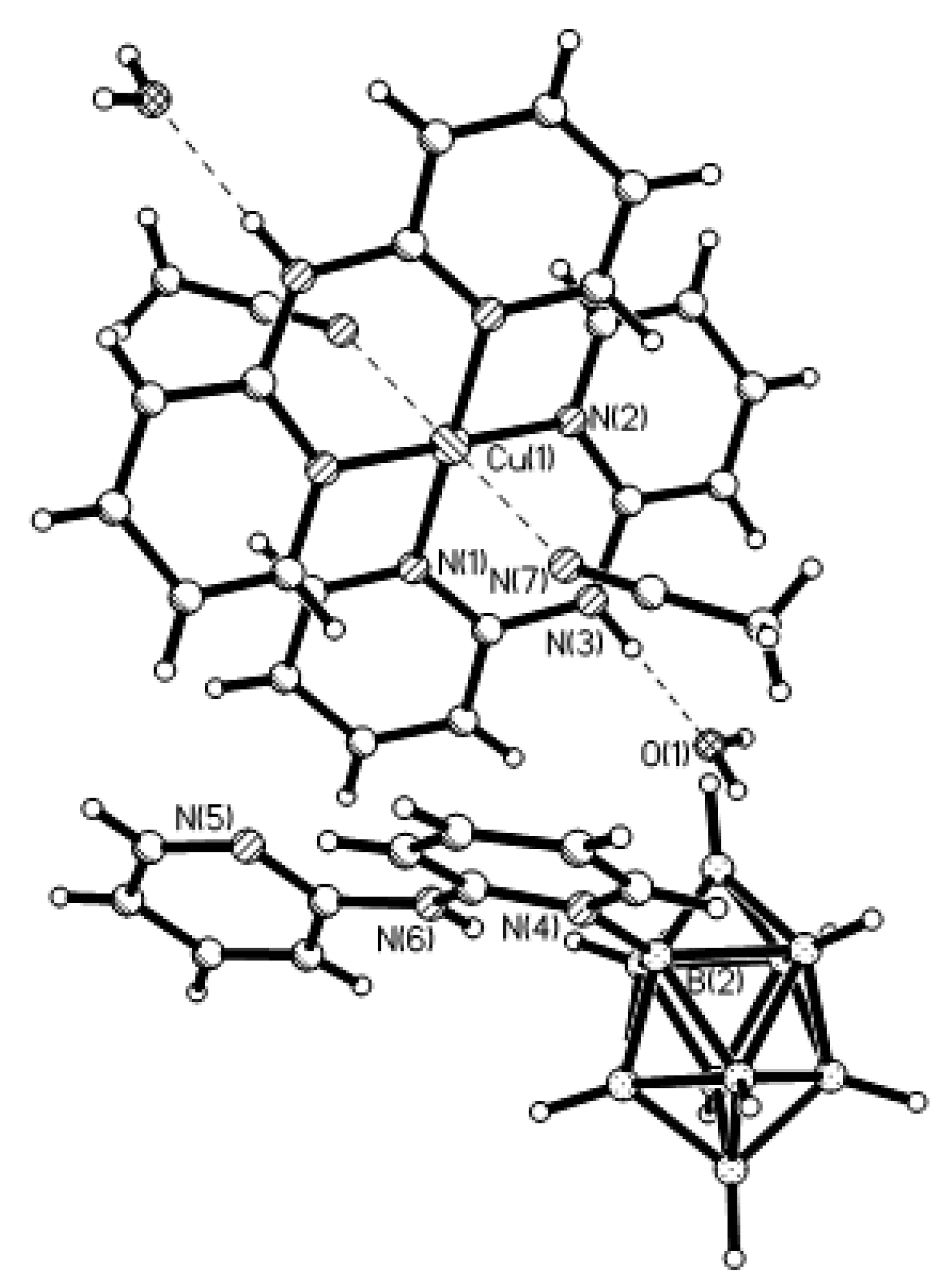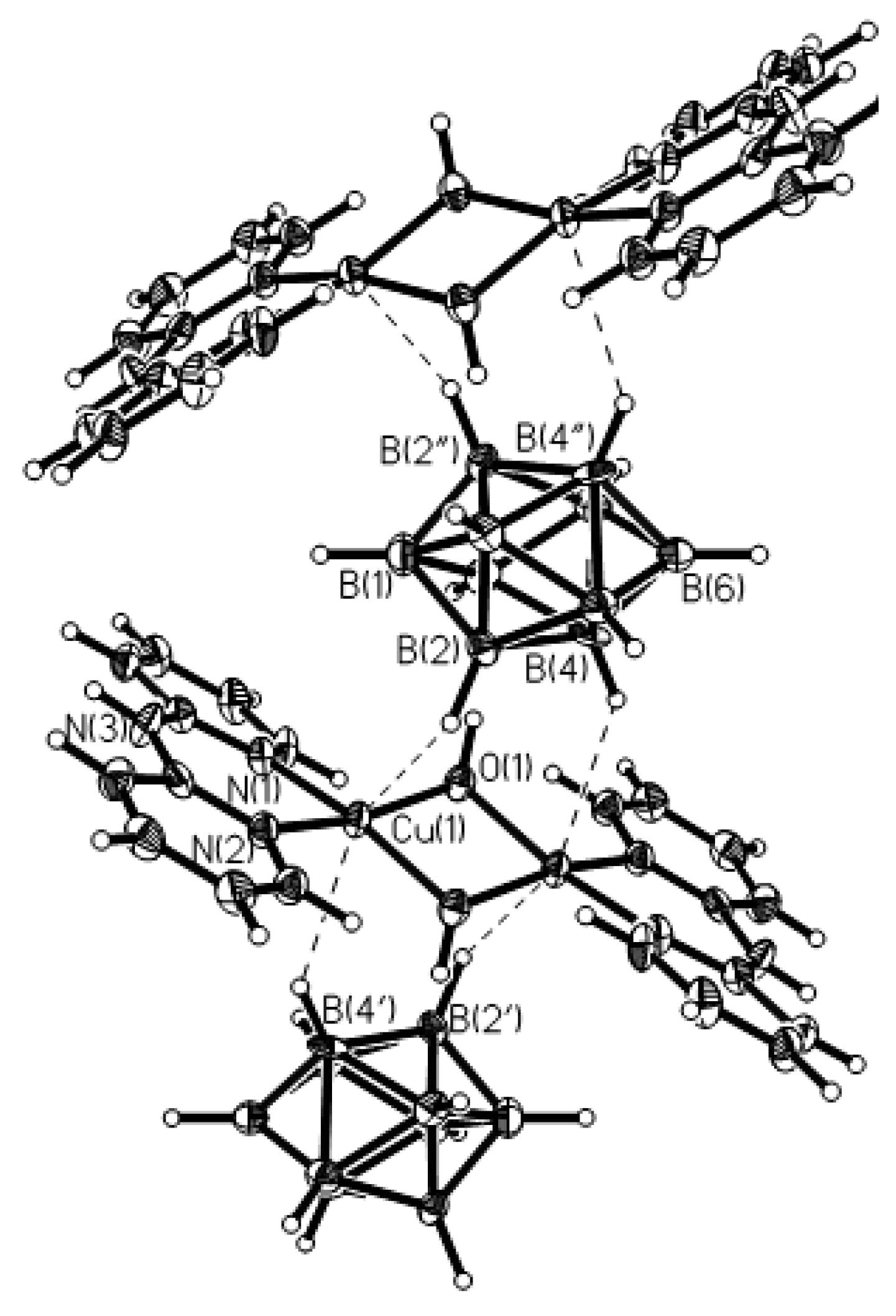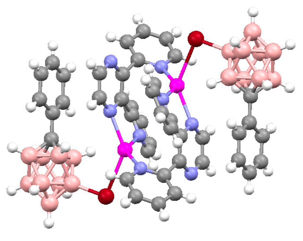 X-ray structure of {(MeCN)2Cu[2-B10H9(N-2,2′-Bipy)]}. Reproduced with permission from reference [44]. Copyright © (2011) Springer.