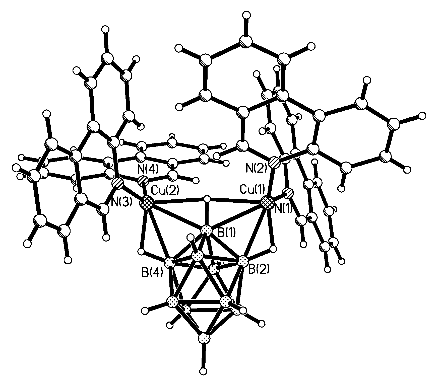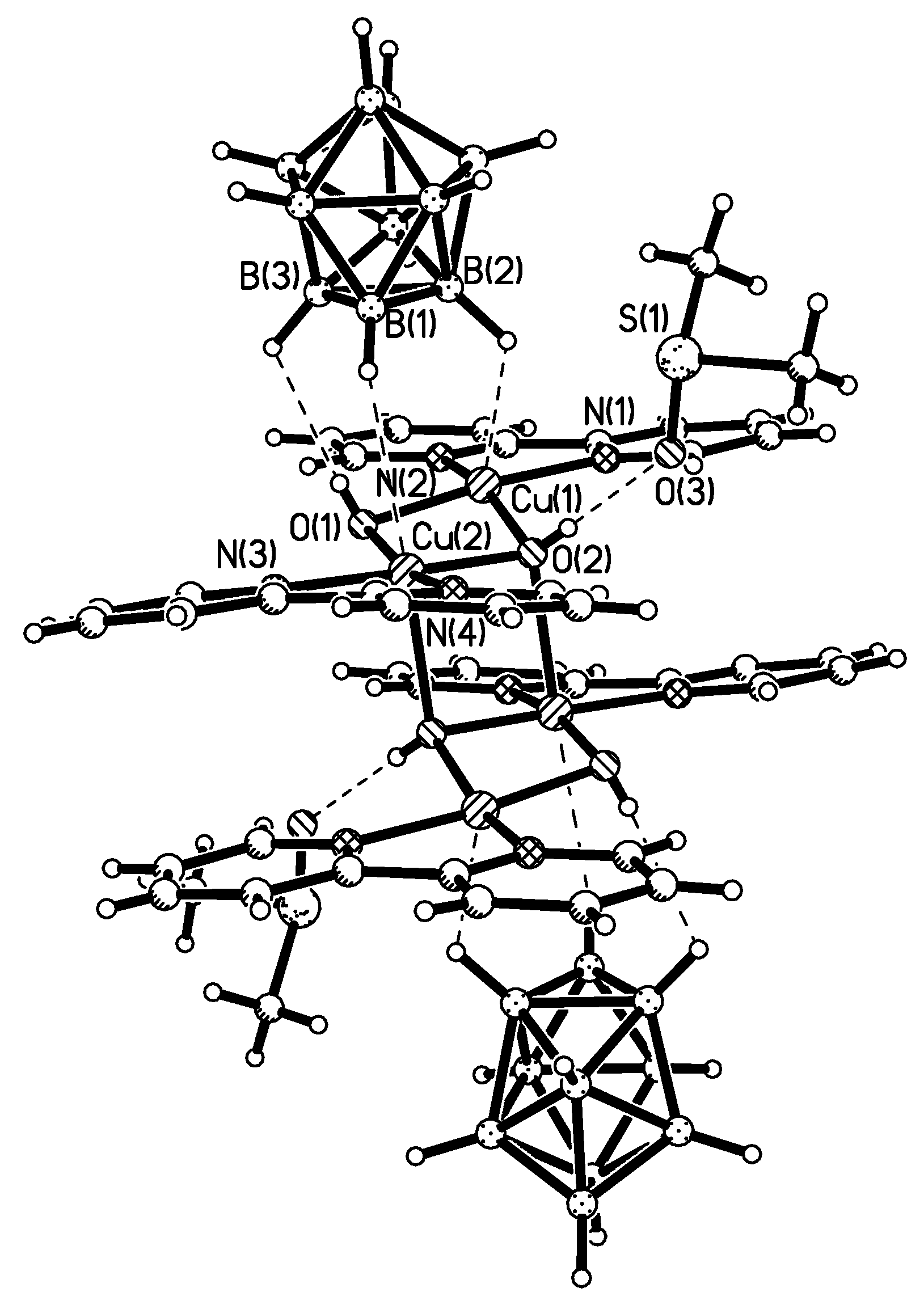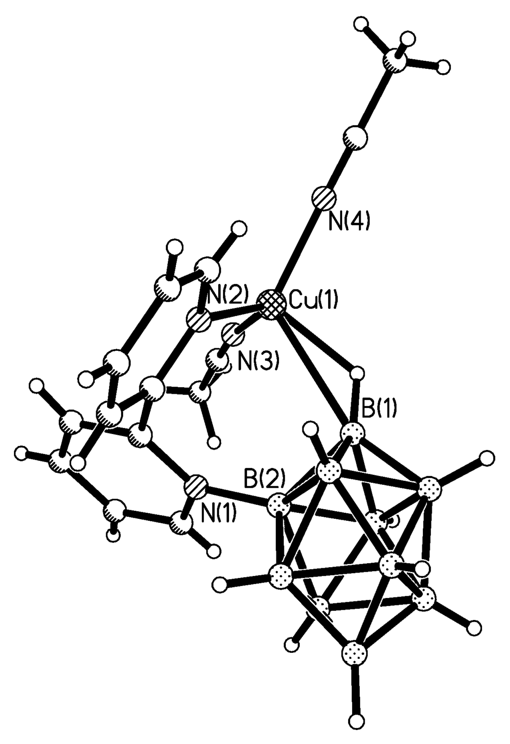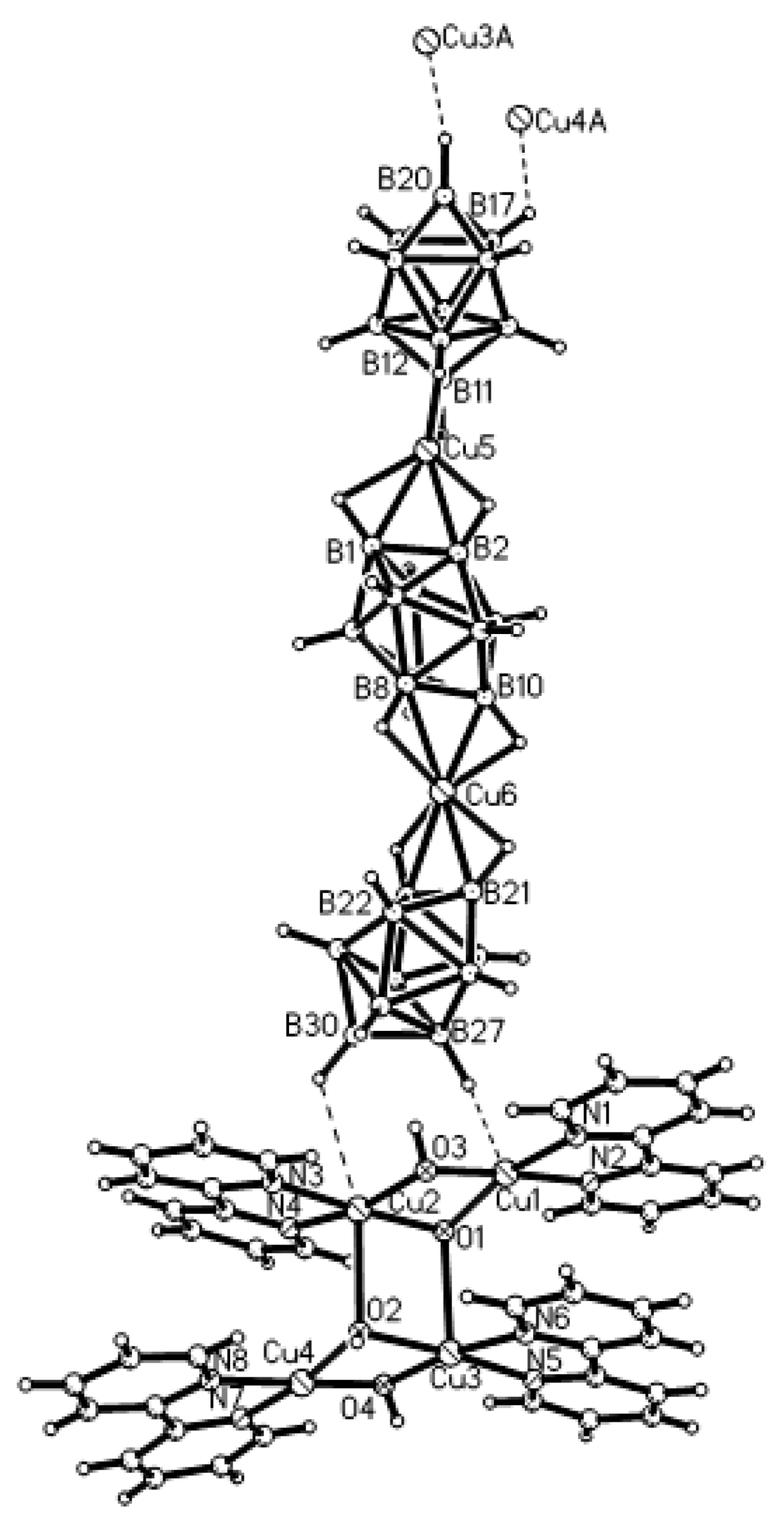 X-ray structure of {(MeCN)2Cu[2-B10H9(N-2,2′-Bipy)]}. Reproduced with permission from reference [44]. Copyright © (2011) Springer.