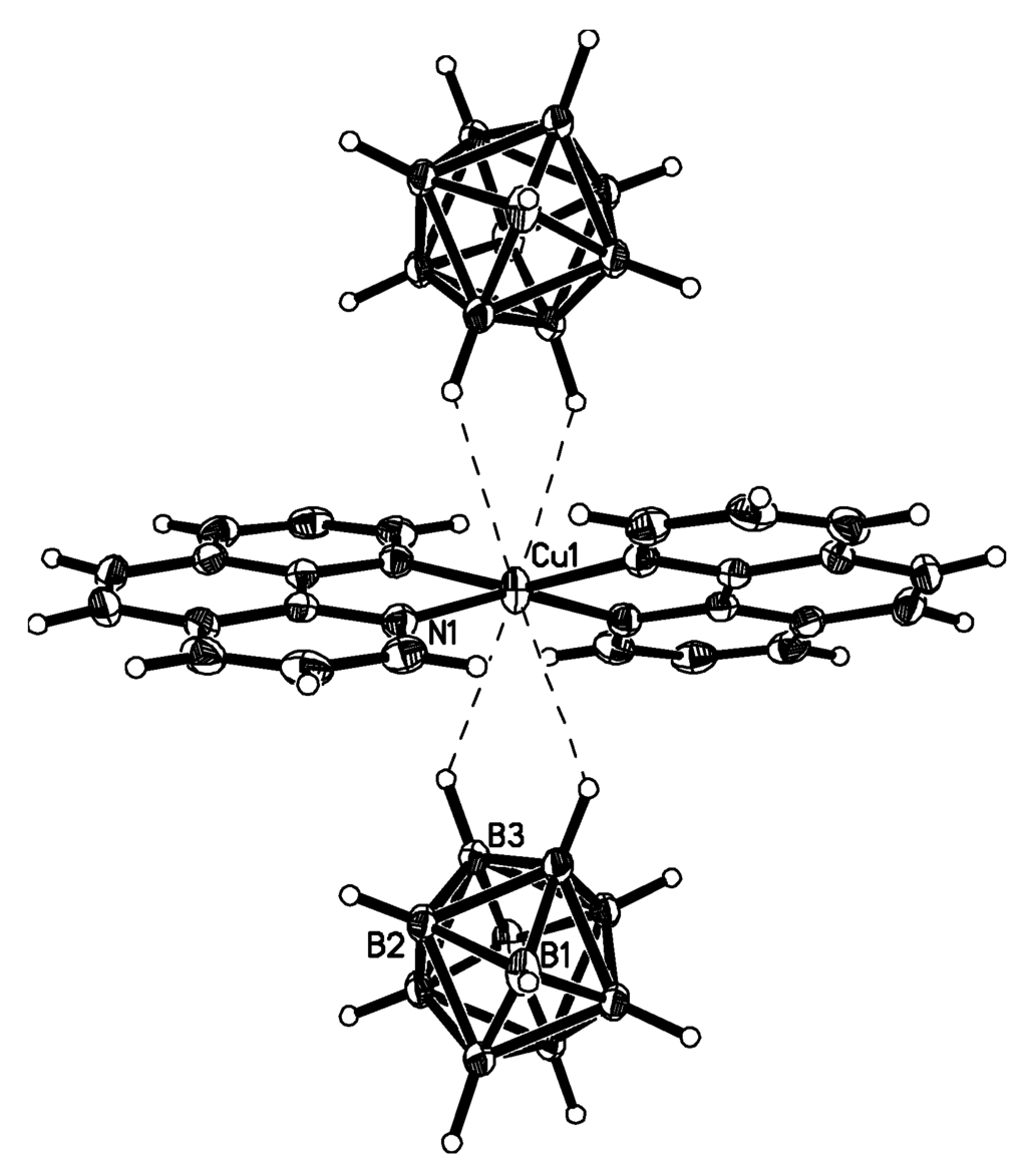 Fragment of X-ray structure of {[Cu(Phen)2][B10H10]}. Reproduced with permission from reference [43]. Copyright © (2015) Elsevier.