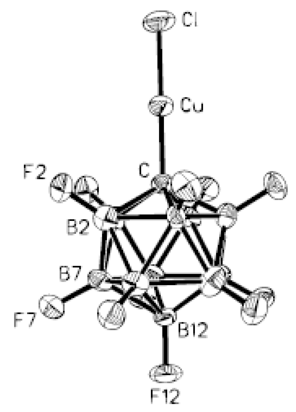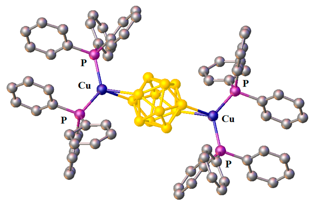 - Chaozhou, N.; Yilin, M.; Cuifang, S. Crystal and molecular structure of {[(C6H5)3P]2Cu}2B12H12. Acta Chim. Sin. 1985, 43, 411–414. [Google Scholar]
